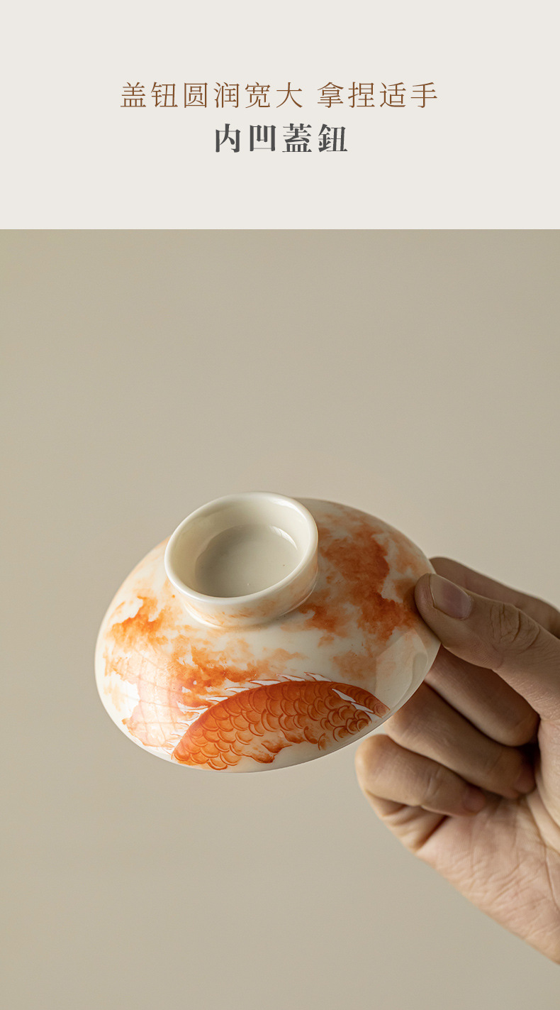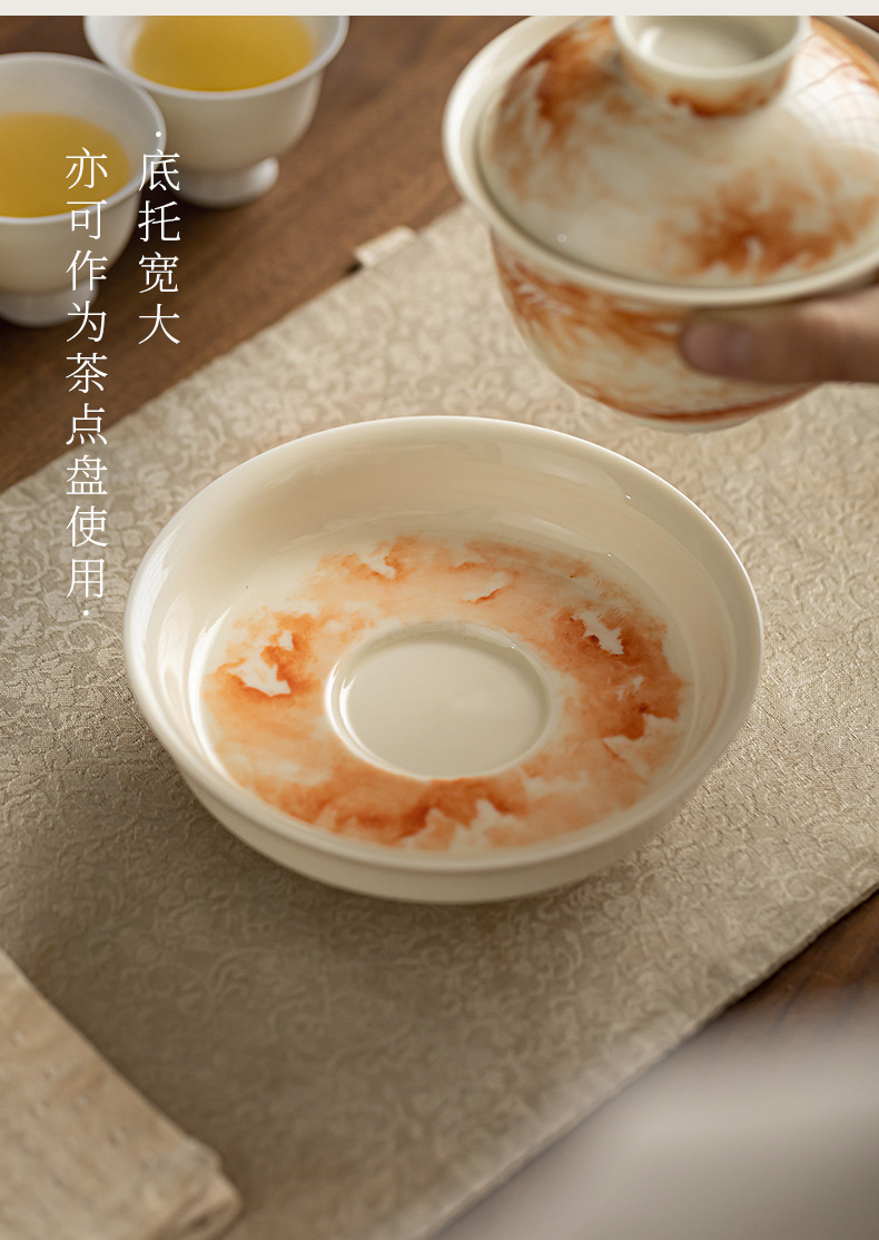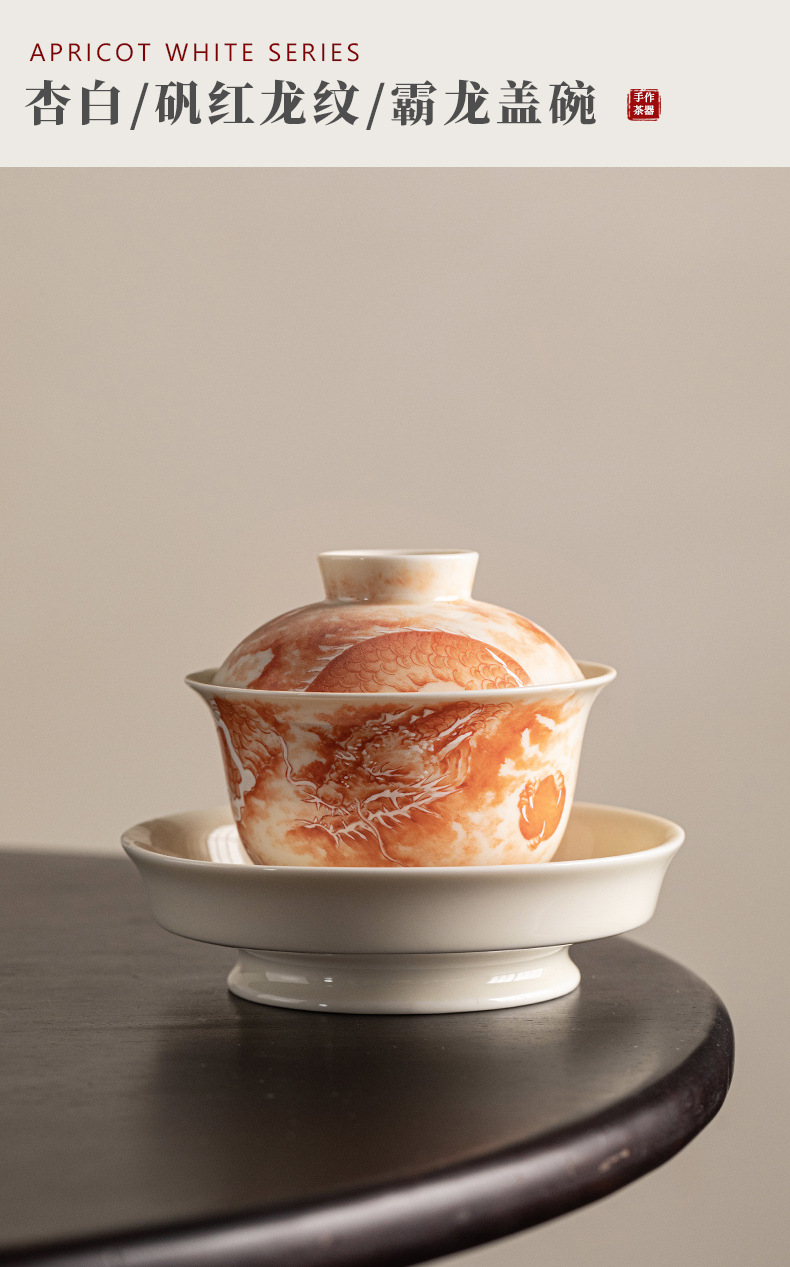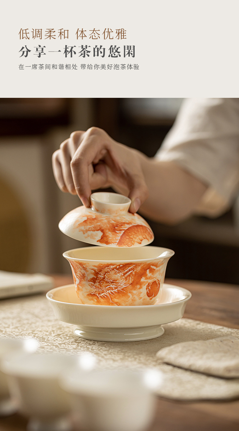 하오 란 살구색 화이트 유약 드래곤 패턴 3 캡 보울 티 컵 뚜껑 세라믹 쿵푸 티 세트 싱글 안티 스케일 티 볼스토어 가기
