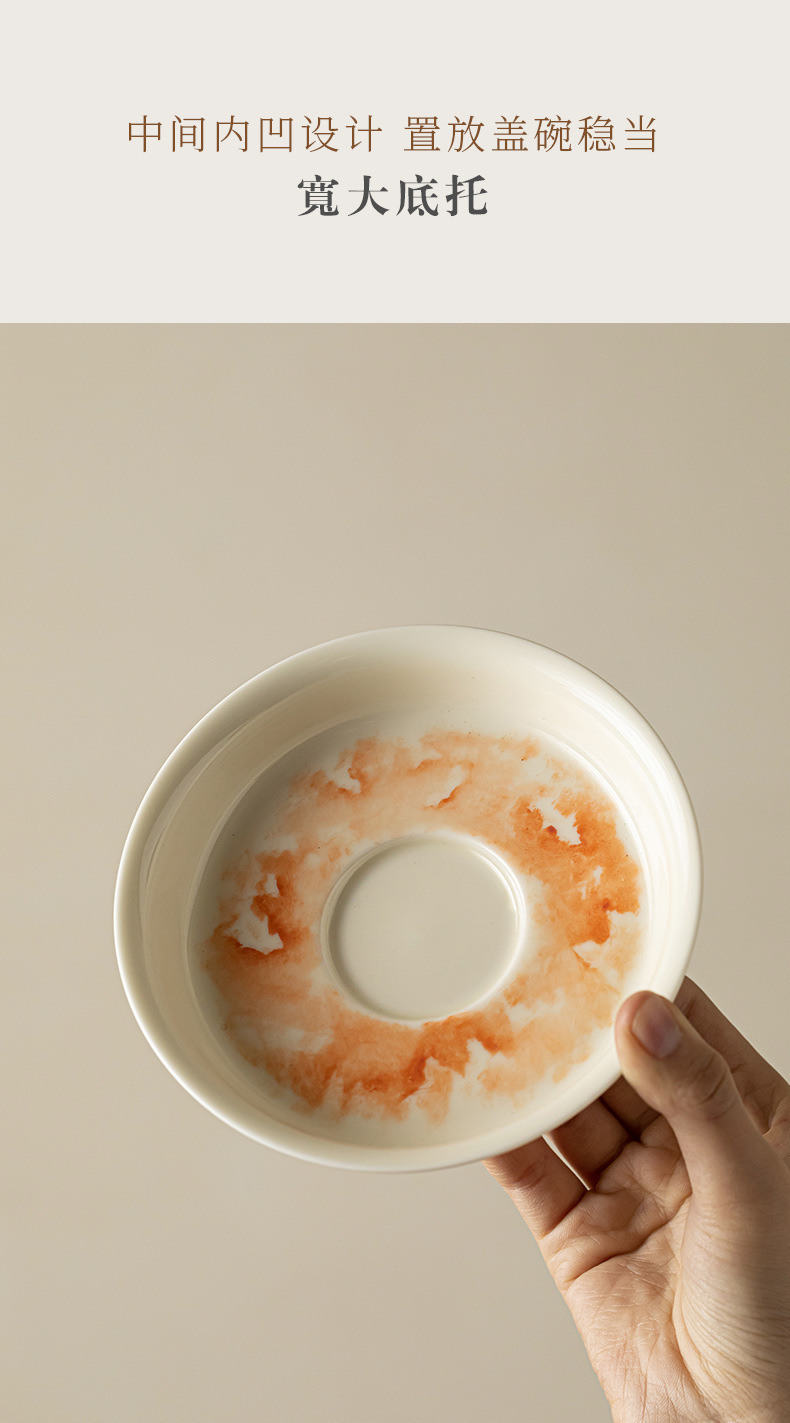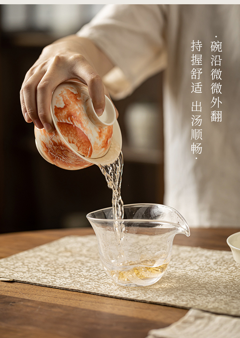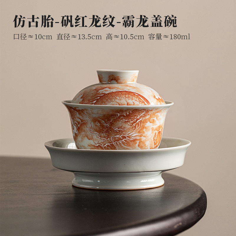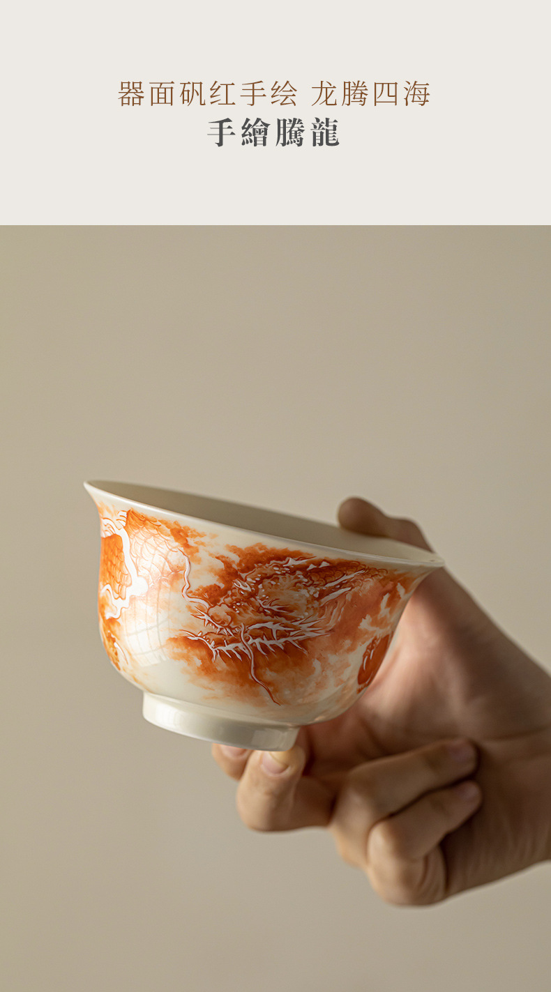 하오 란 살구색 화이트 유약 드래곤 패턴 3 캡 보울 티 컵 뚜껑 세라믹 쿵푸 티 세트 싱글 안티 스케일 티 볼