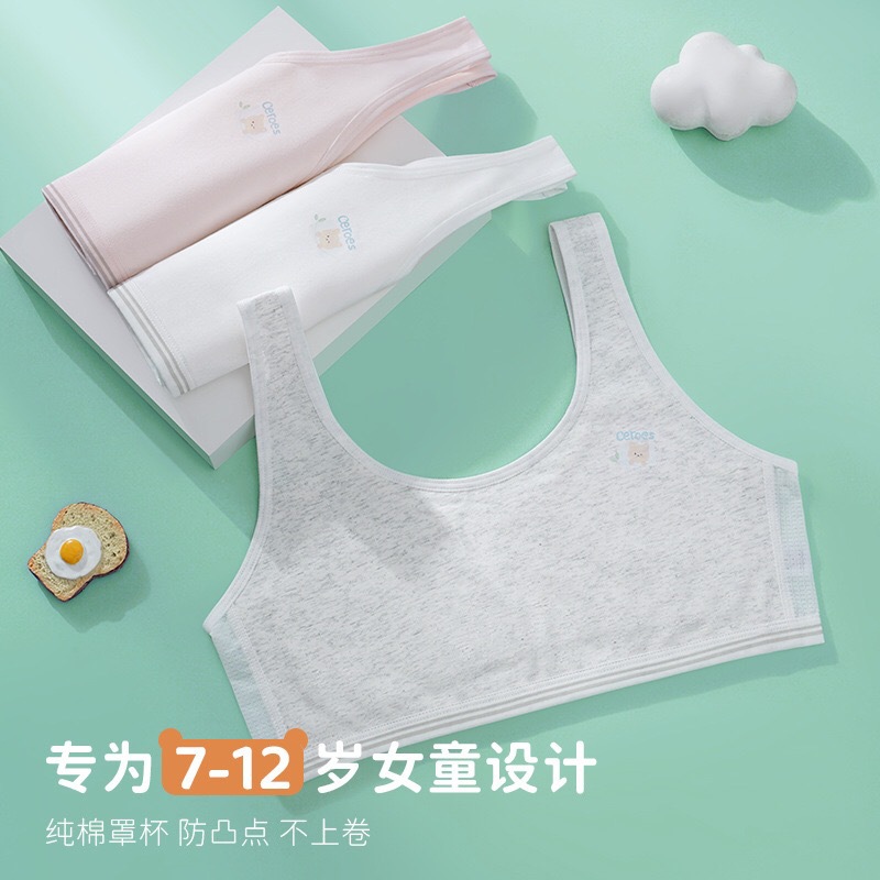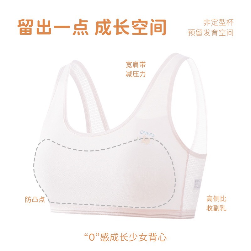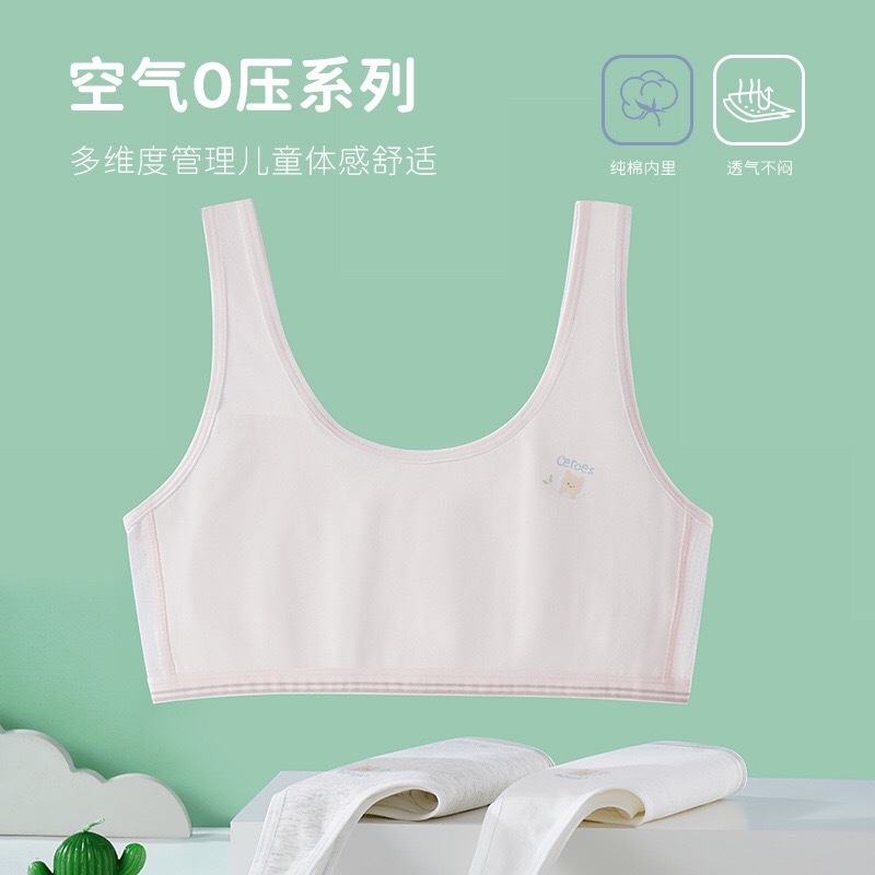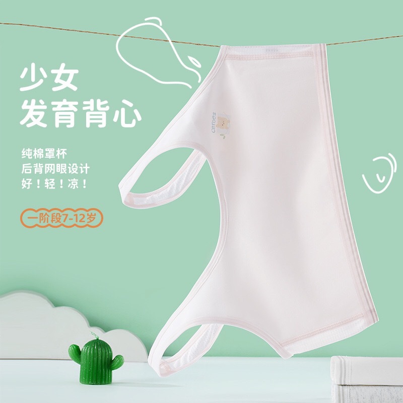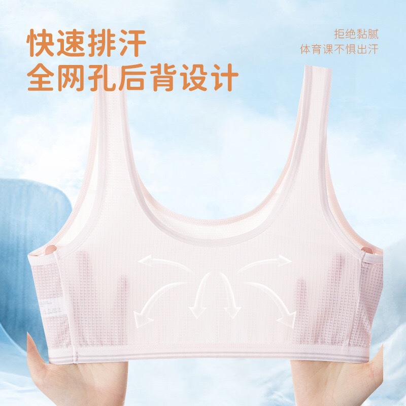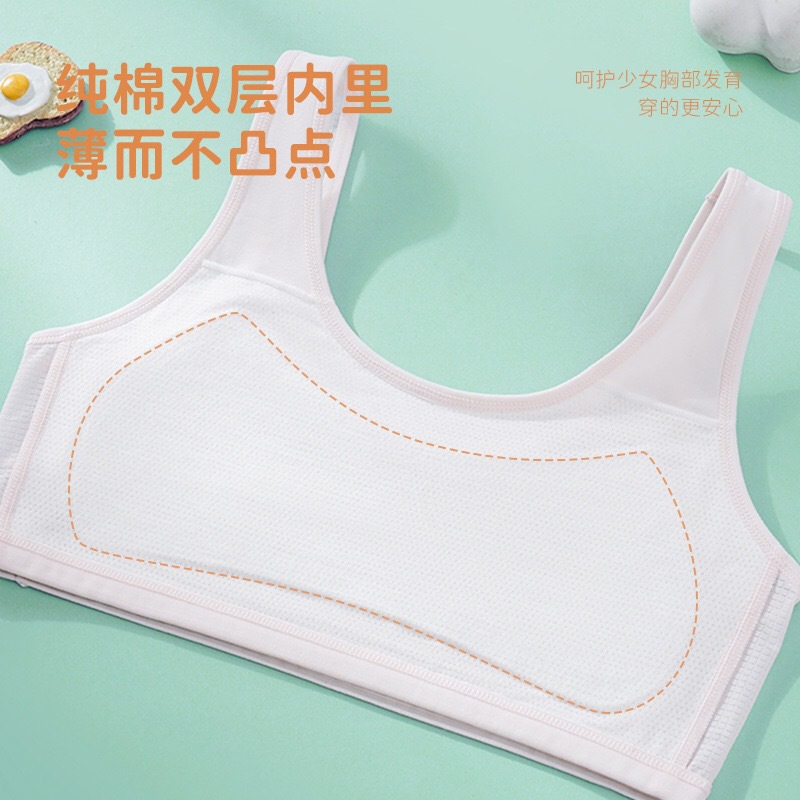 소녀 개발 무대 빛과 얇은 1 단계 추적없는 속옷 통기성 퓨어 코튼 내부 땀-위킹 메쉬 소녀의 작은 조끼