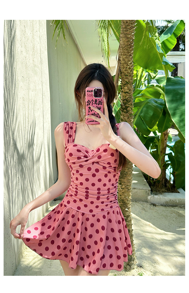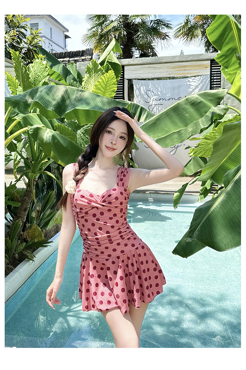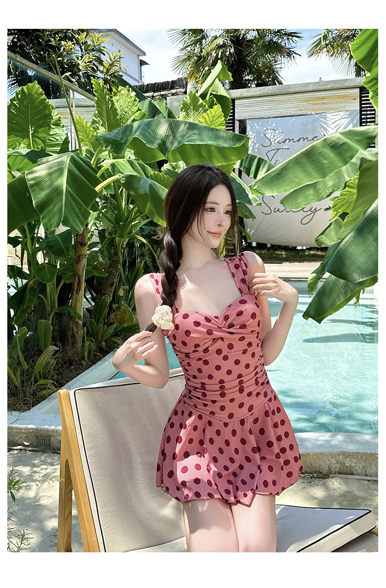 빈티지 폴카 도트 클래식 슬림 핏 슬리밍 보수 복서 스커트 캐주얼 휴가 수영복 여성용 수영복