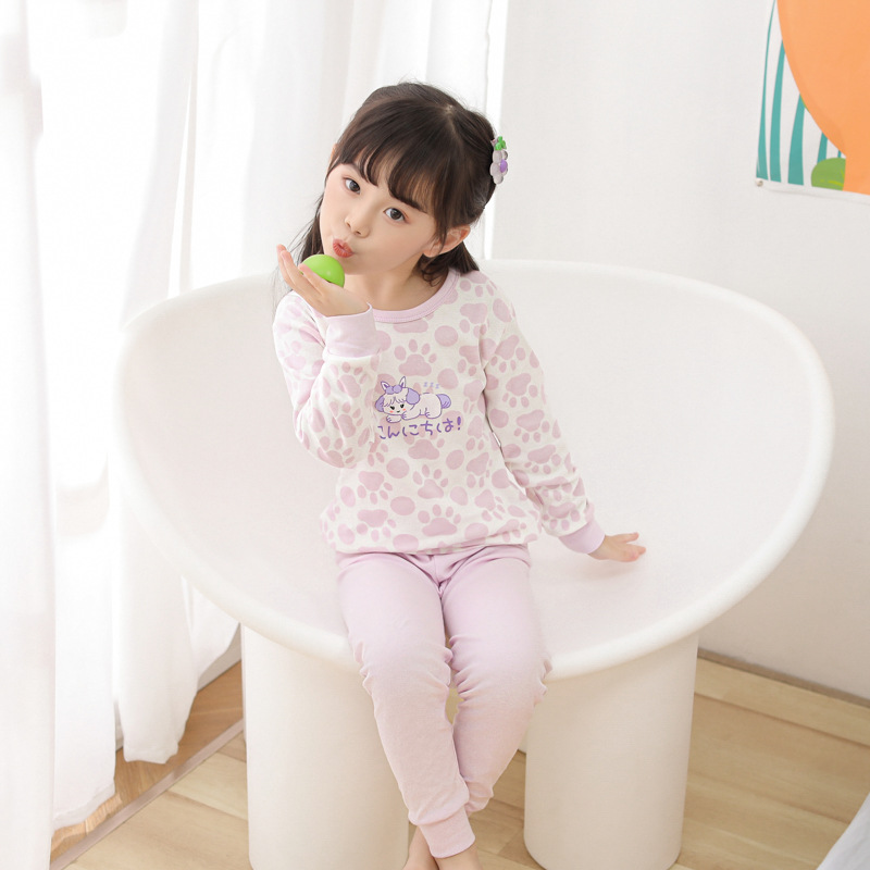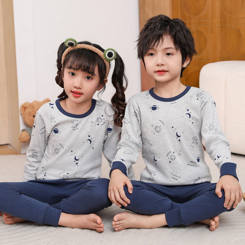 가을 새로운 어린이 면화 가을 옷 세트 만화 인쇄 둥근 목 기초 홈 소년과 소녀를위한 에어컨 옷