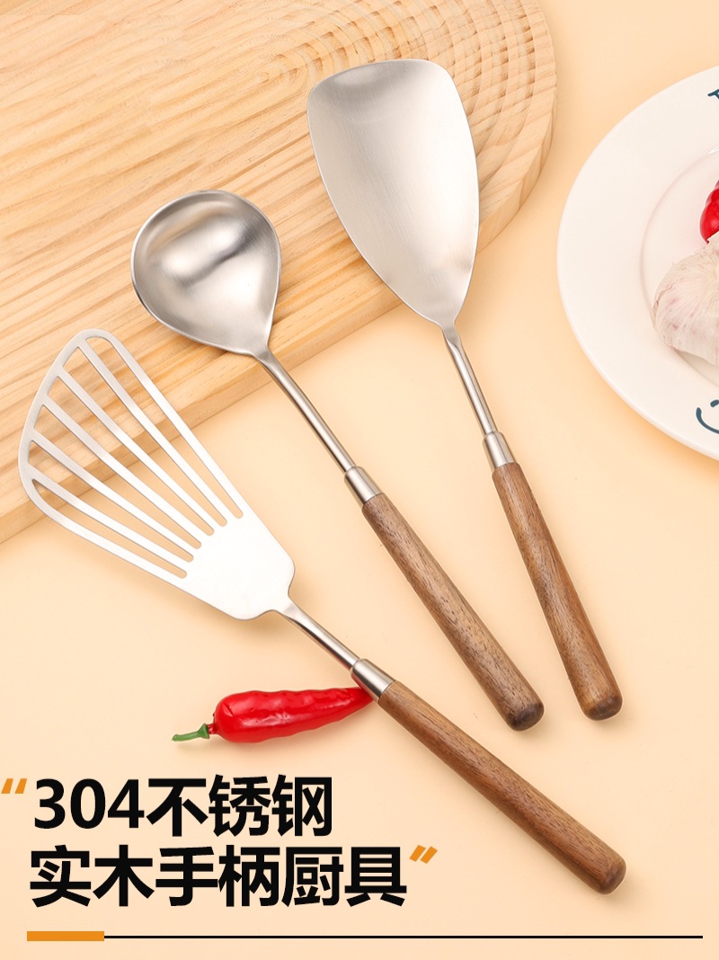 304 스테인레스 스틸 호두 손잡이 식품 학년 주방용품 가정용 요리 스프 스푼 스테이크 스커트 주방 도구 세트스토어 가기