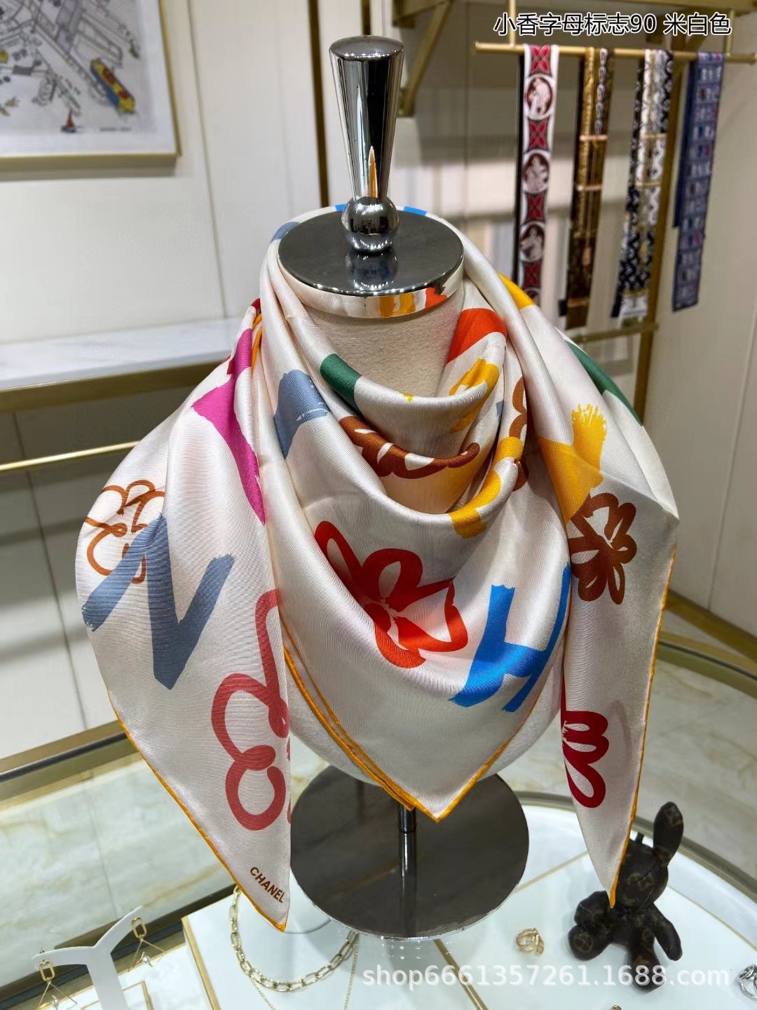 유럽과 미국의 패셔너블한 실크 스카프, 고급스럽고 우아한 스카프, 가벼운 럭셔리 실크 레터 프린트, 해외 스타들과 같은 스타일의 실크 스퀘어 스카프스토어 가기
