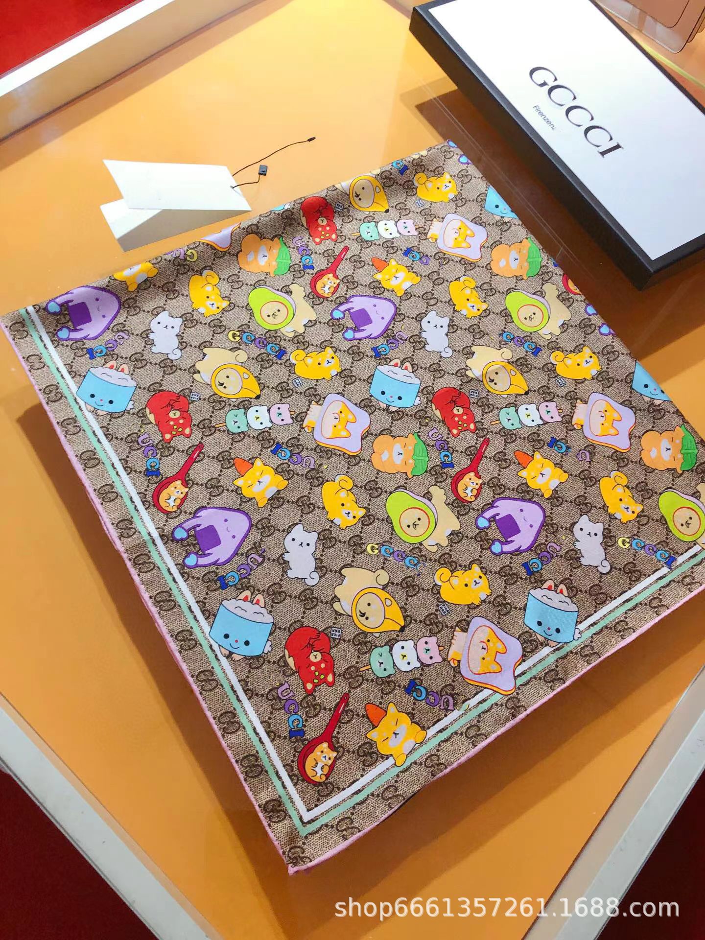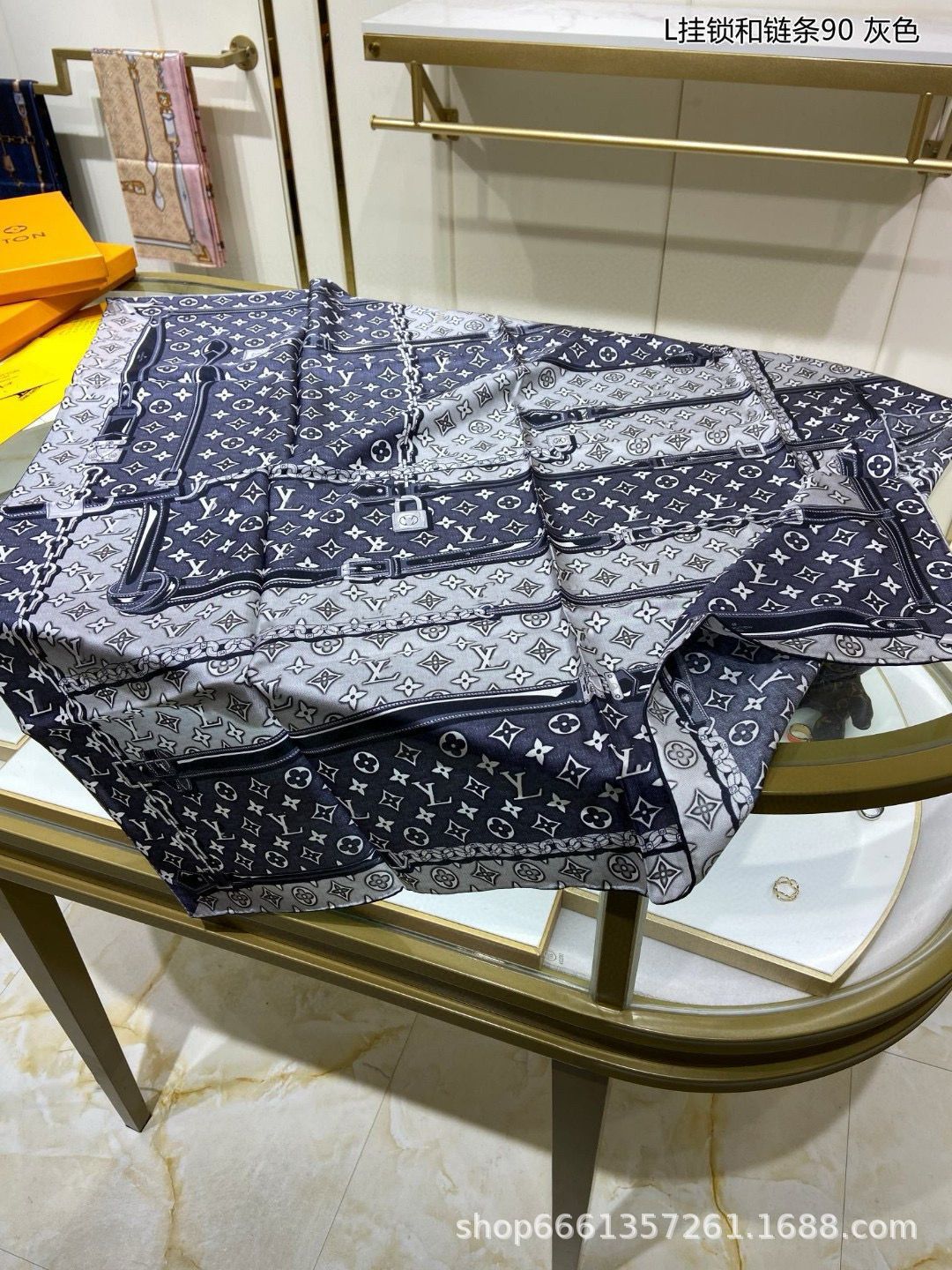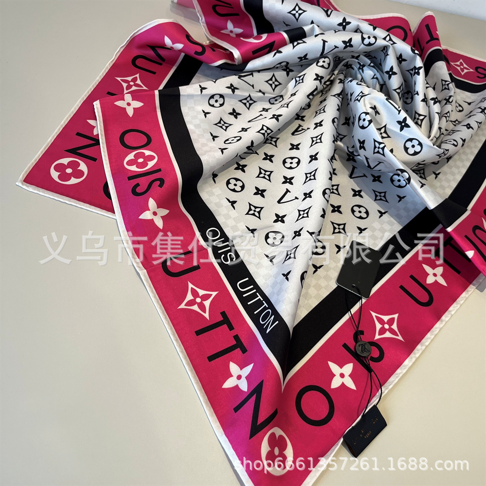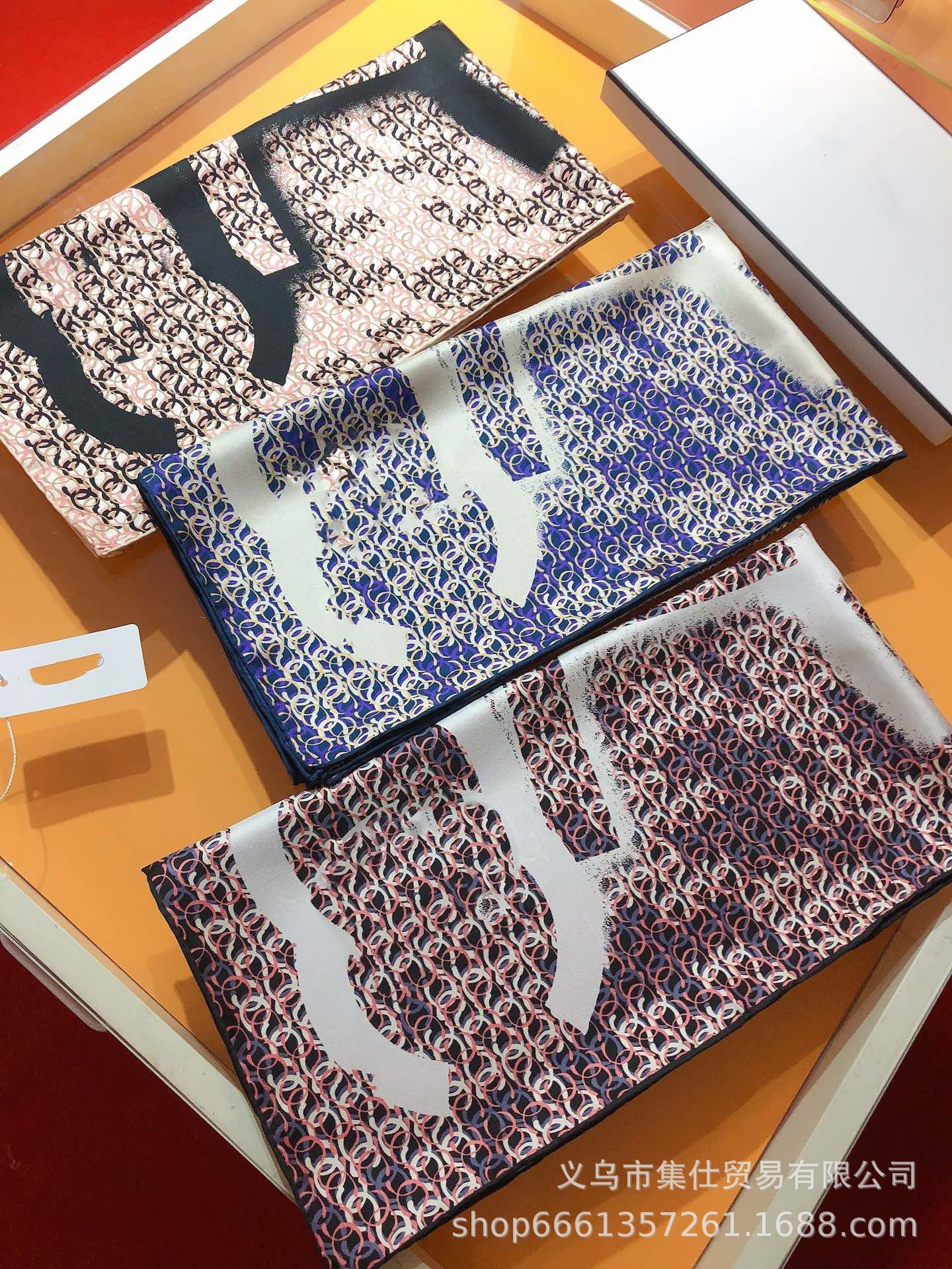 유럽과 미국의 패셔너블한 실크 스카프, 고급스럽고 우아한 스카프, 가벼운 럭셔리 실크 레터 프린트, 해외 스타들과 같은 스타일의 실크 스퀘어 스카프