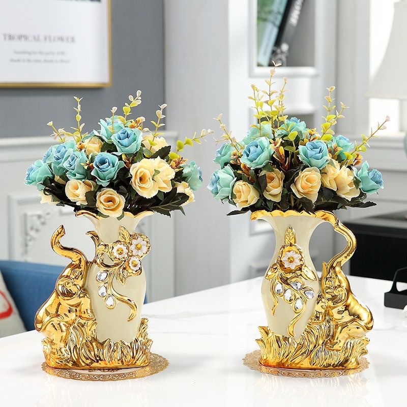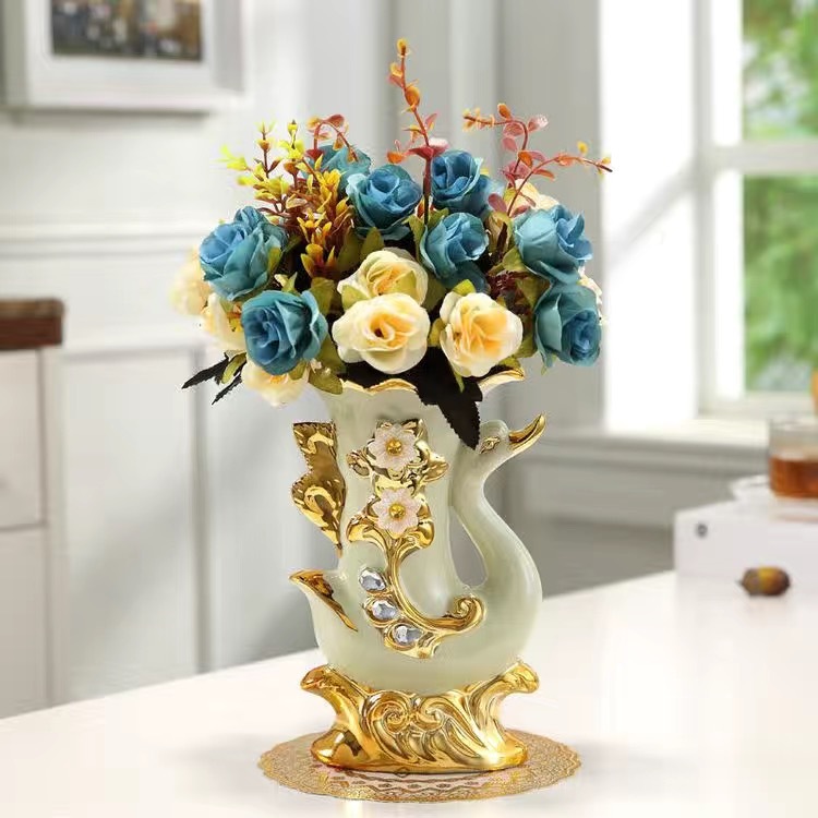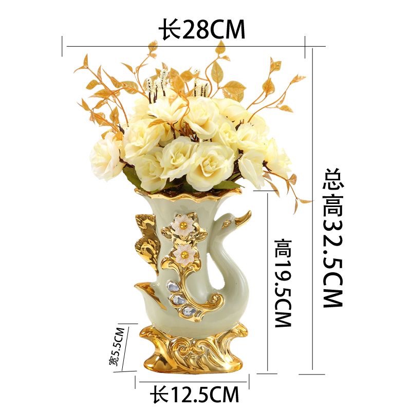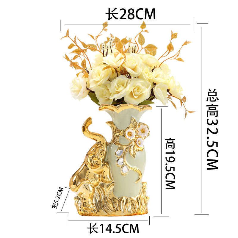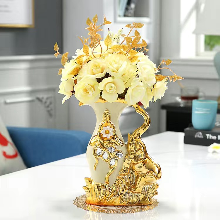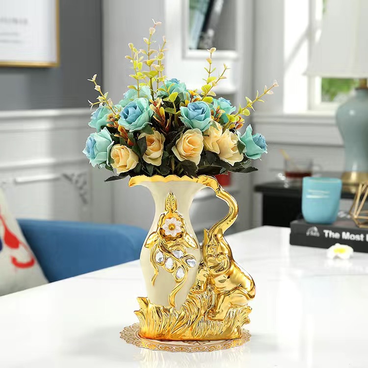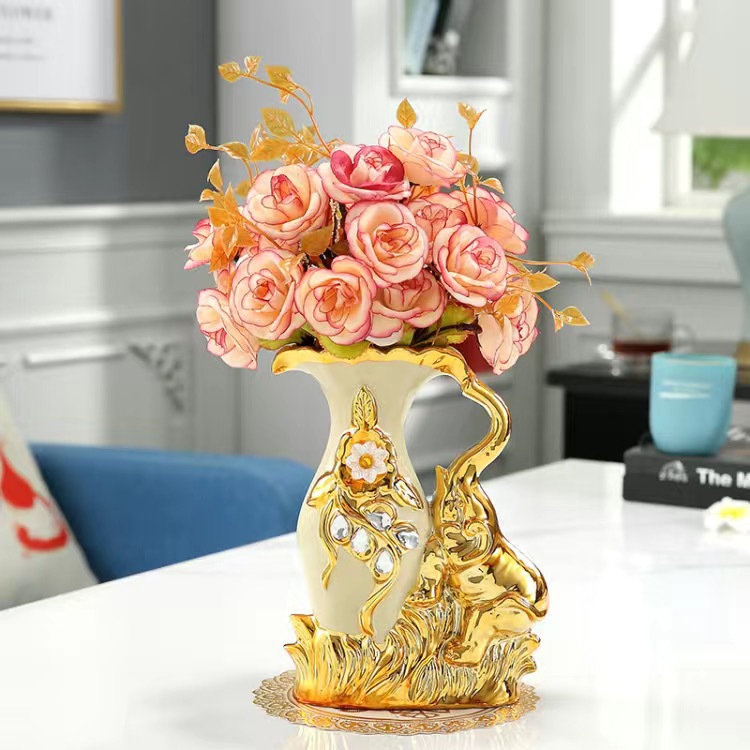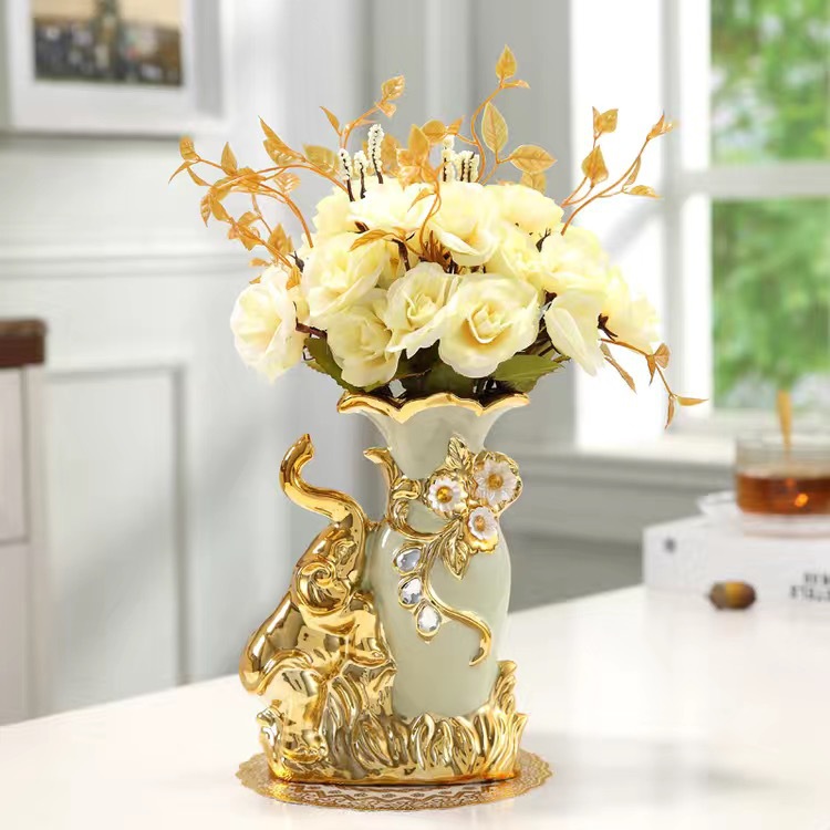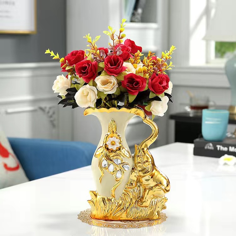 材质:花瓶为陶瓷材质 电镀工艺 花束为绢布材质