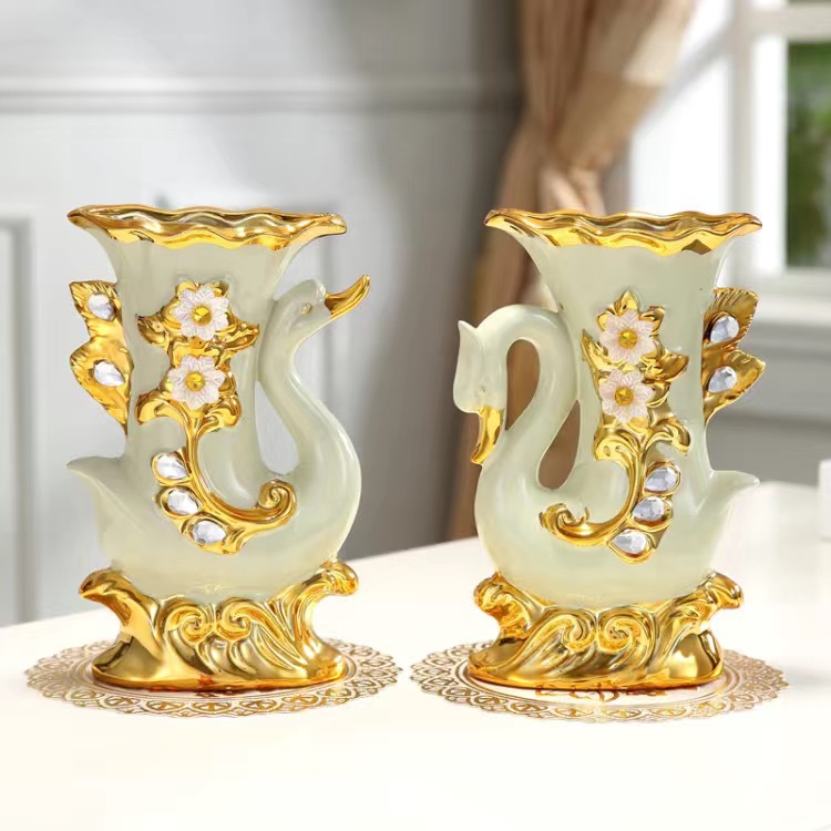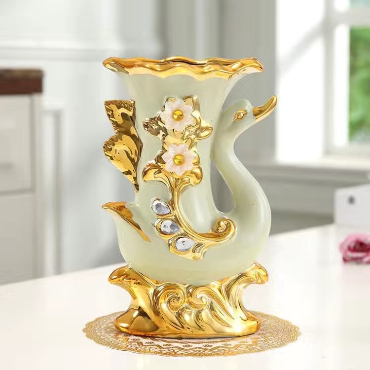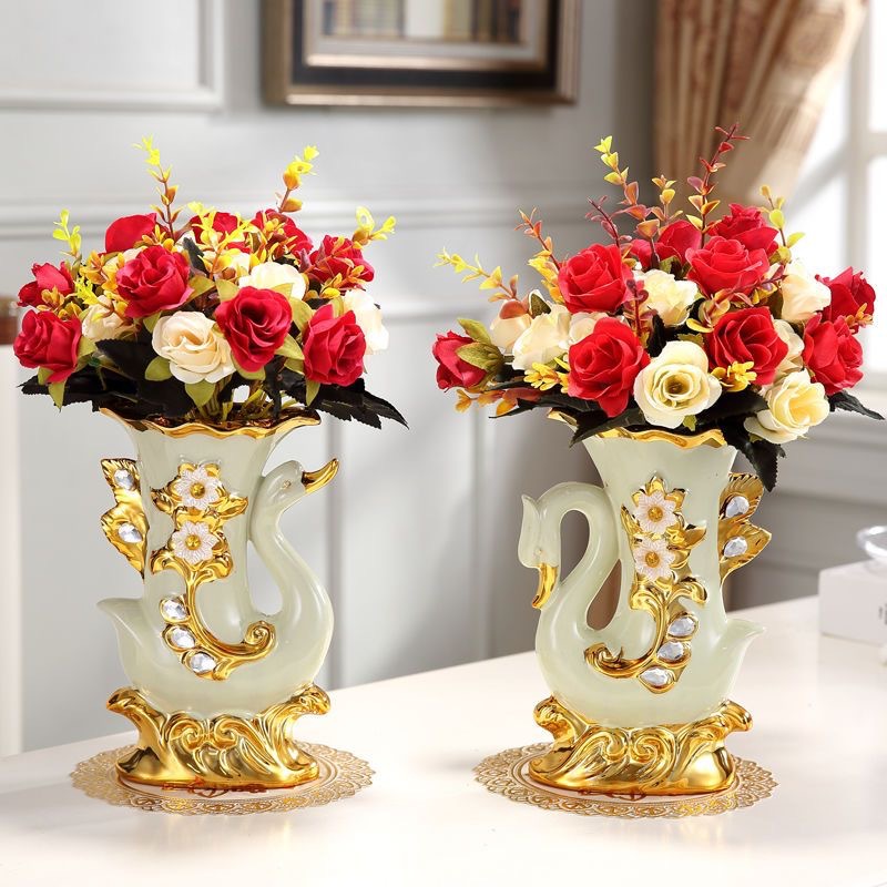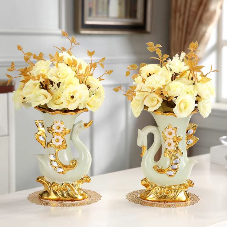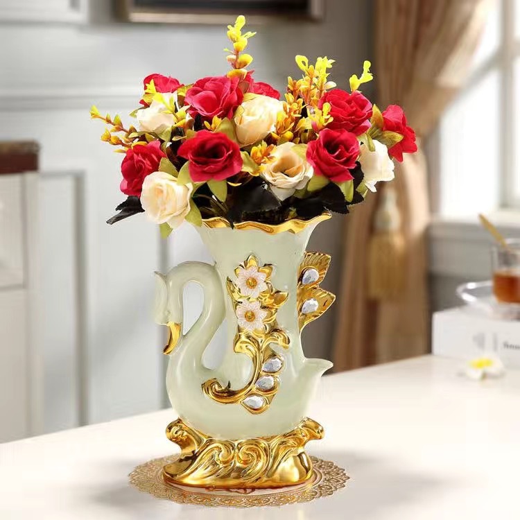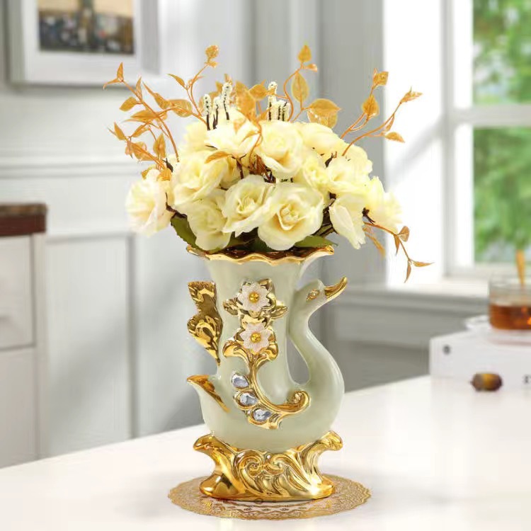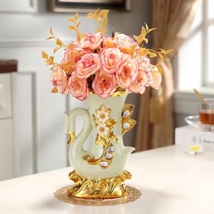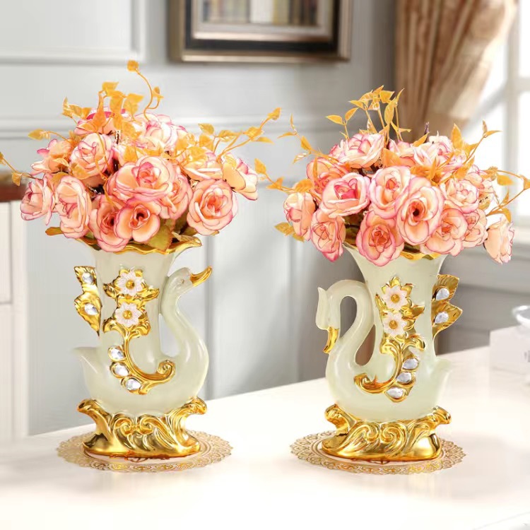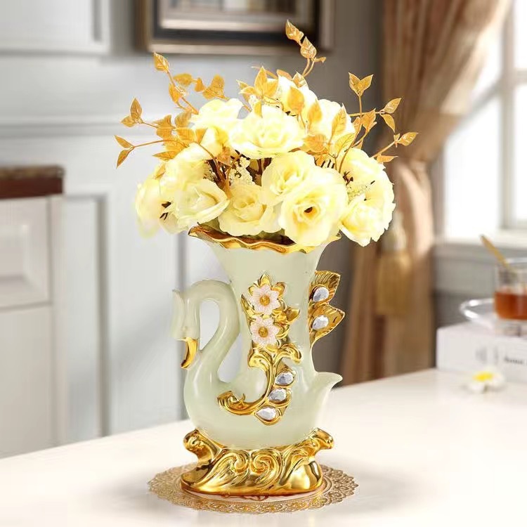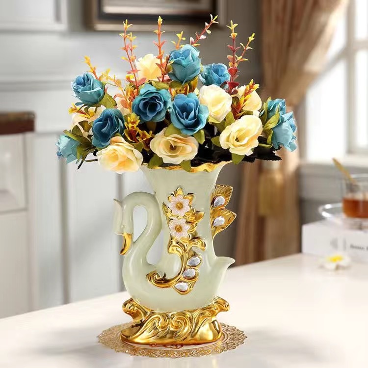材质:花瓶为陶瓷材质 电镀工艺 花束为绢布材质