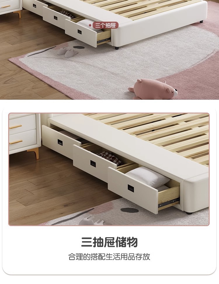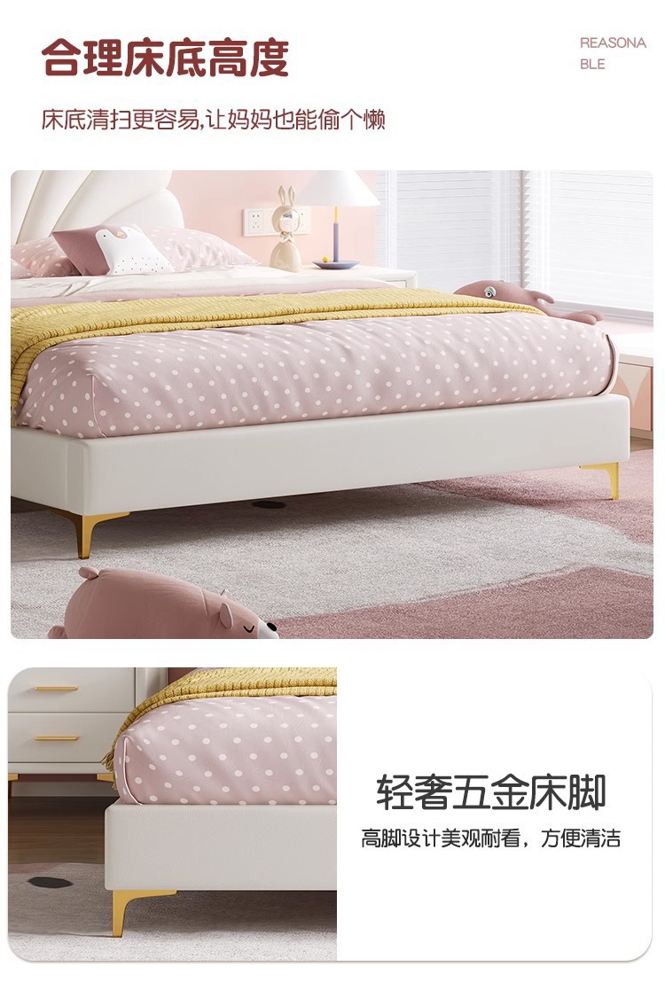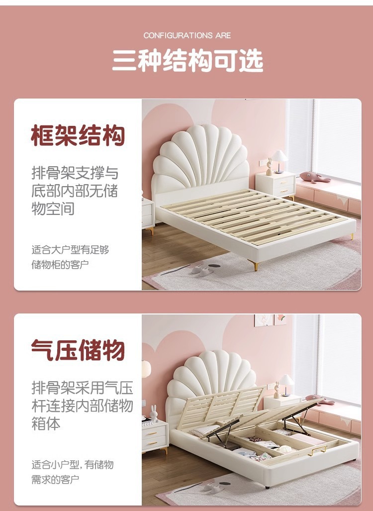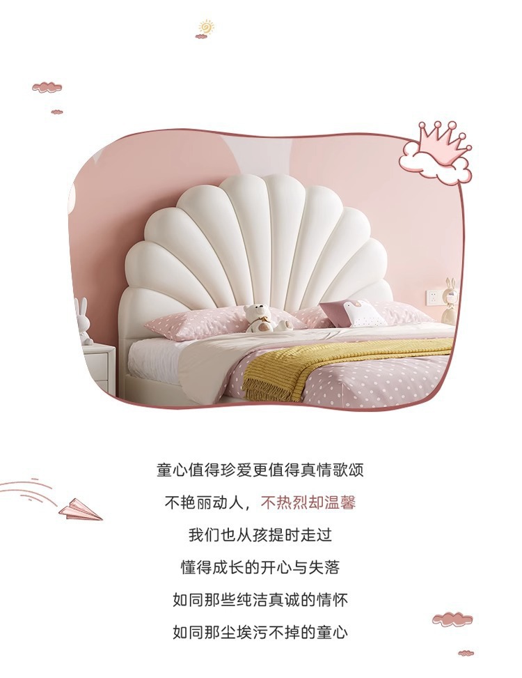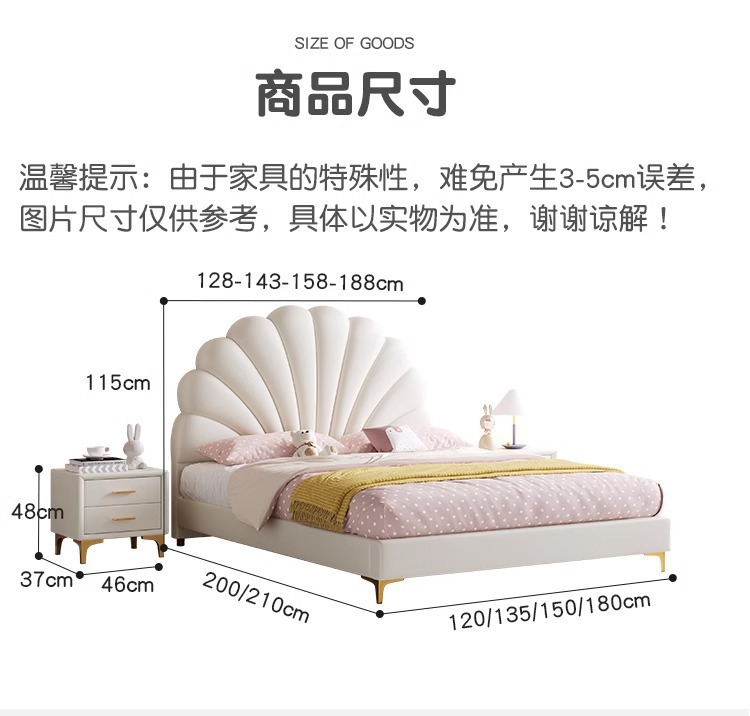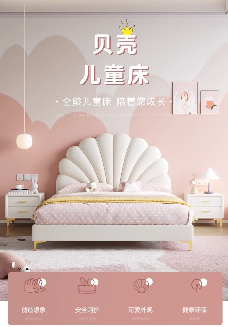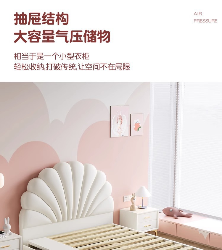 단단한 나무 어린이 방 침대 소녀 공주 방 간단한 현대 침실 부드러운 가죽 아트 크림 침대 스타일 꽃잎 더블 침대