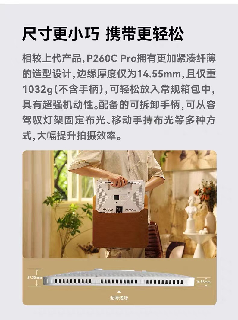 • Godox P260C Pro가 표준으로 제공됩니다.