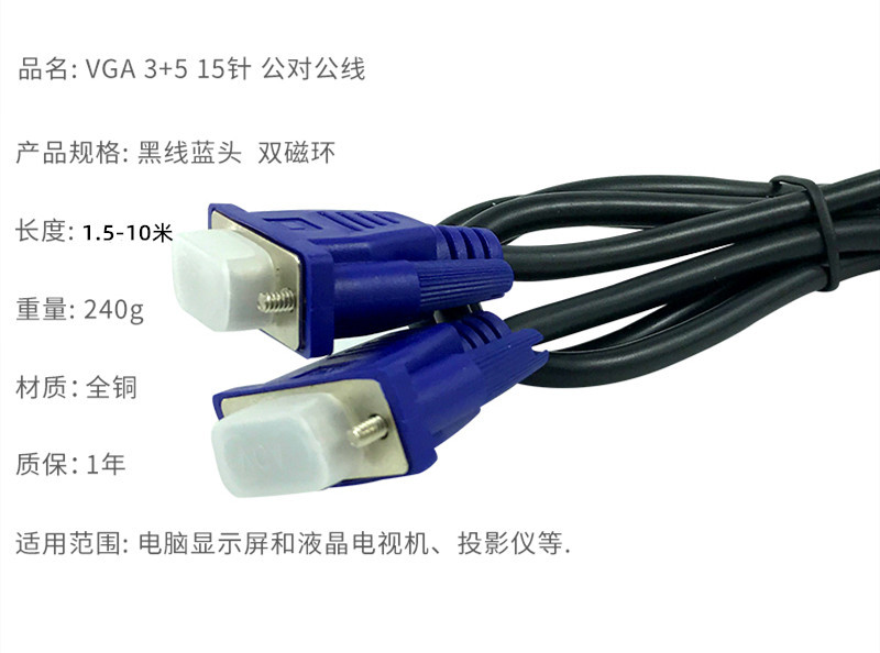 컴퓨터 와이어 도매 1.5 미터 3/5/10 미터 3 5 VGA 케이블 디스플레이 데스크탑 컴퓨터 호스트 케이블스토어 가기