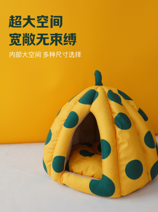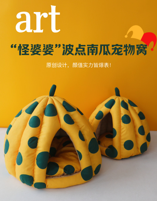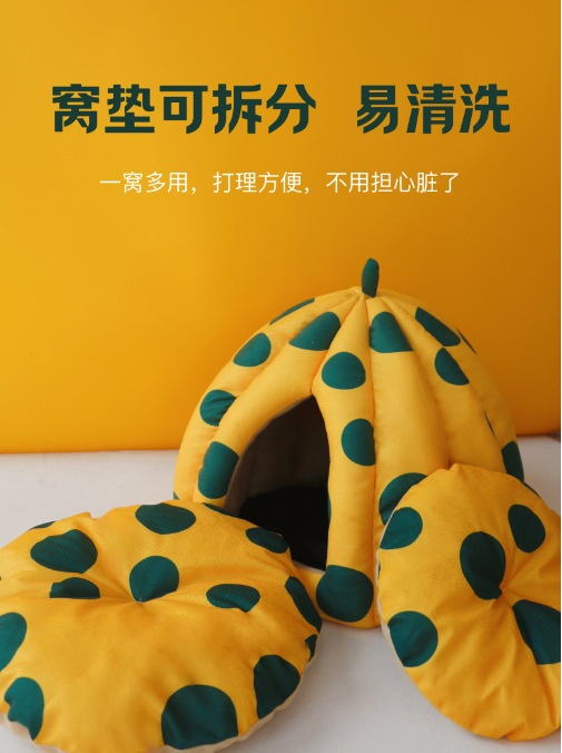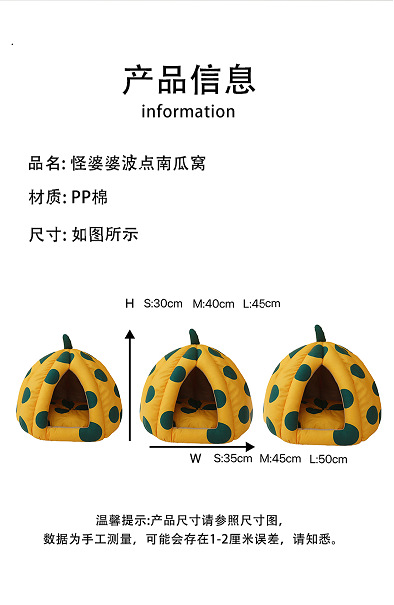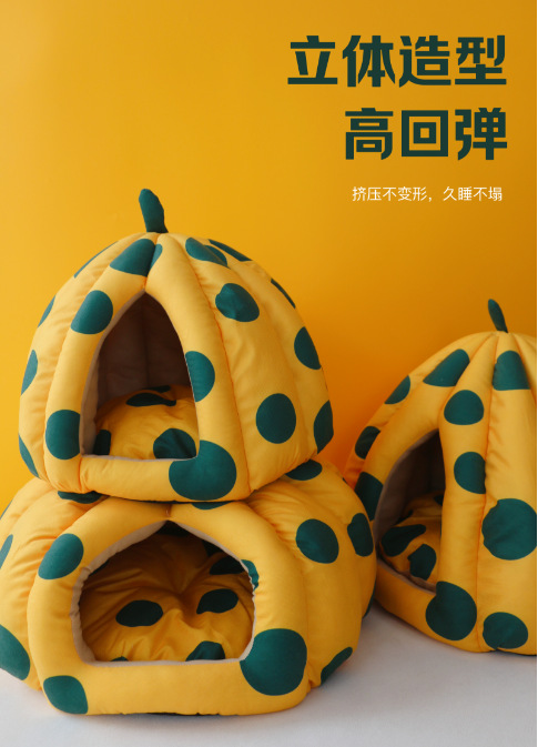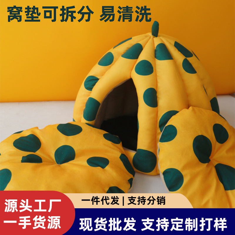 고양이 둥지 라운드 호박 사계절 유니버설 애완 동물 용품 폐쇄 두꺼운 개 둥지 고양이 집 중소 개 도매스토어 가기
