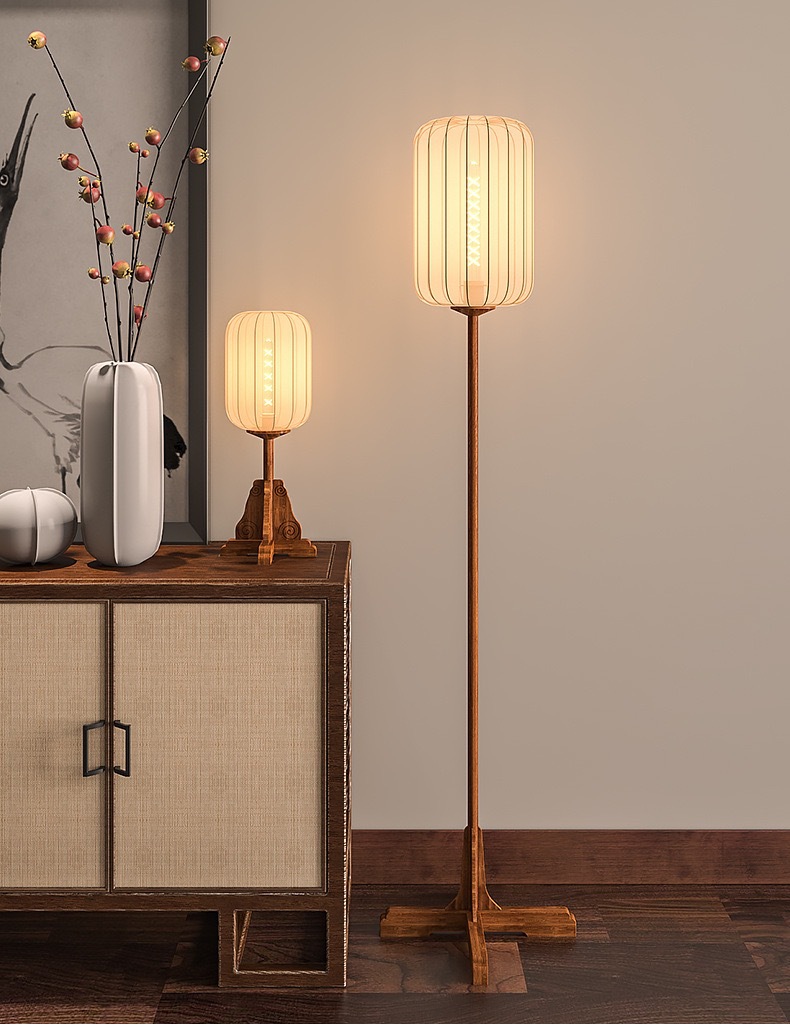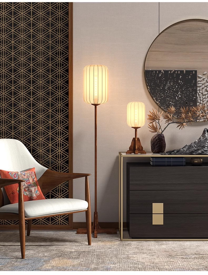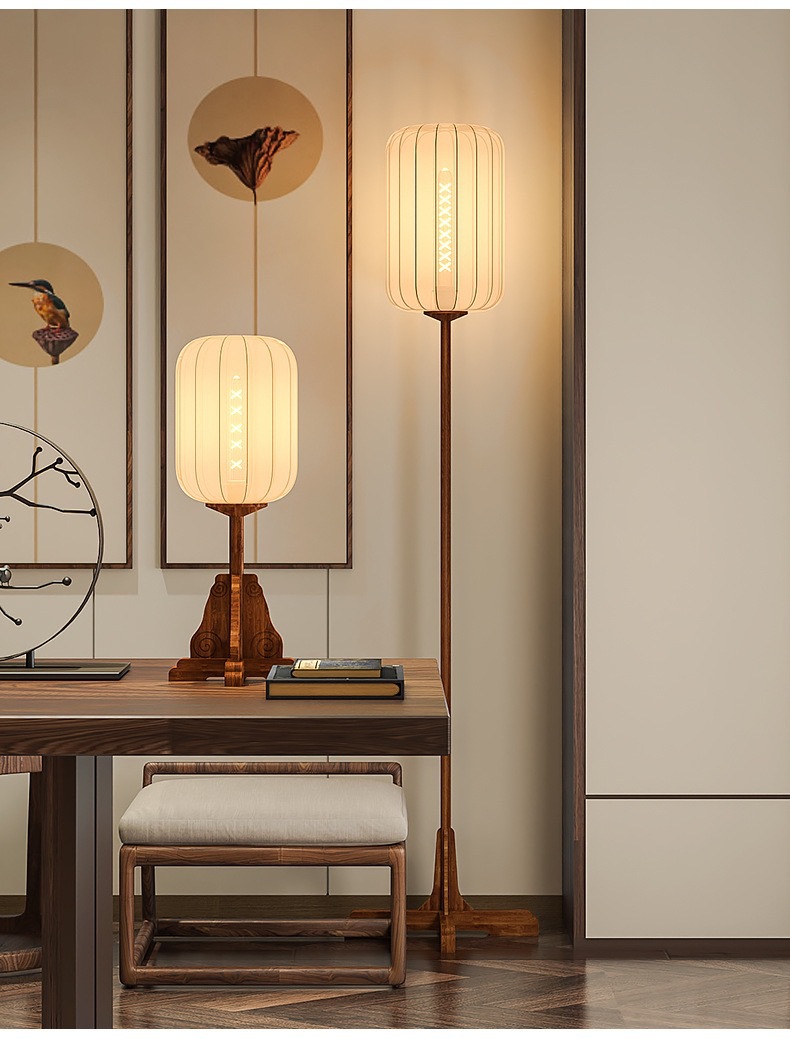 새로운 중국 바닥 램프 선티 룸 홈스테이 골동품 스터디 룸 침실 램프 빈티지 솔리드 우드 패브릭 테이블 램프스토어 가기