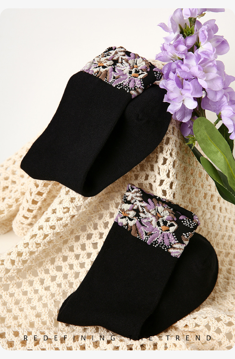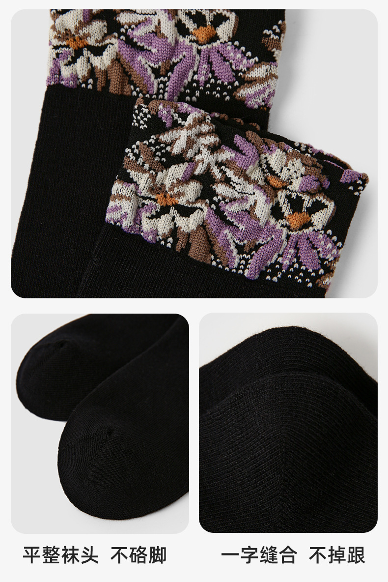 르네상스 조커 바느질 대조되는 양말 여성의 봄과 가을 수직 줄무늬 Ins 트렌디 한 꽃 엠보싱 미드 양말