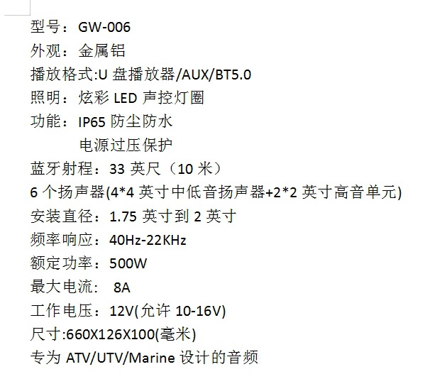 공장 직판 크로스보더 ATV 골프카 오디오 AUX LED 라이트 서라운드 사운드 베이스 블루투스 USB 스피커스토어 가기