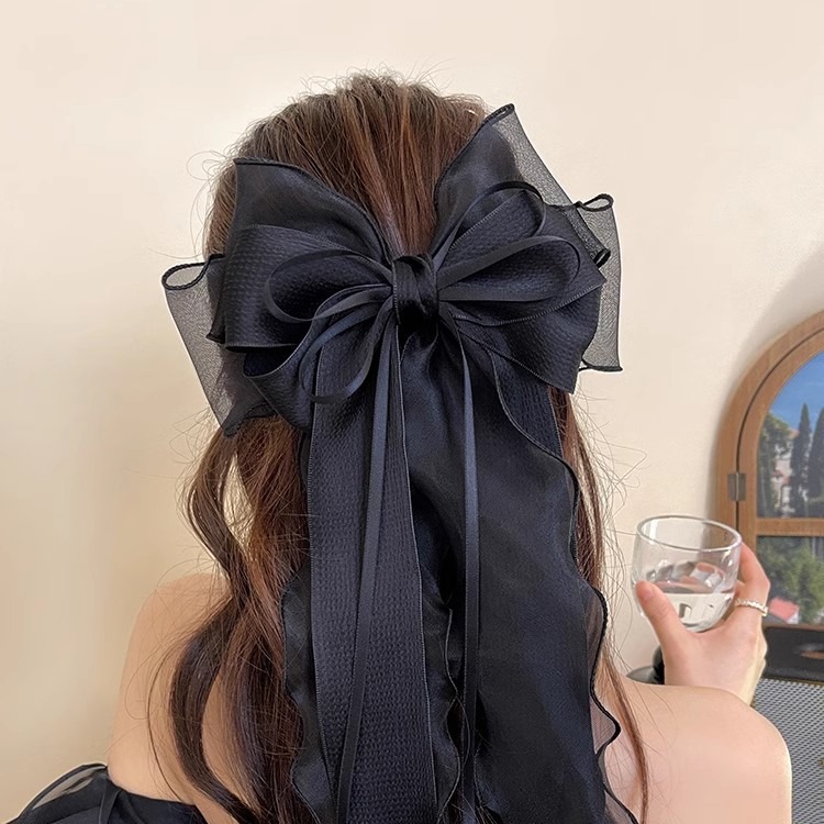 슈퍼 요정 거즈 큰 활 머리핀 2024 새로운 높은 감각 봄 클립 기질 다시 머리 상어 클립 상단 클립스토어 가기