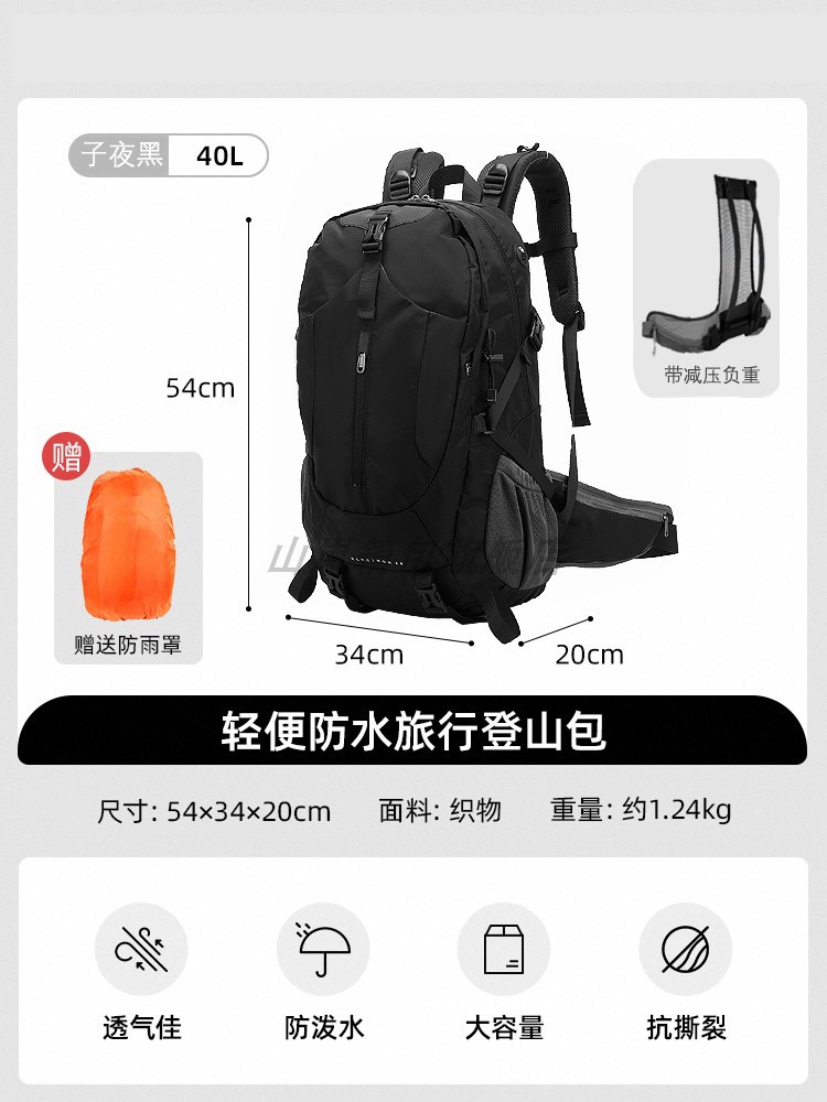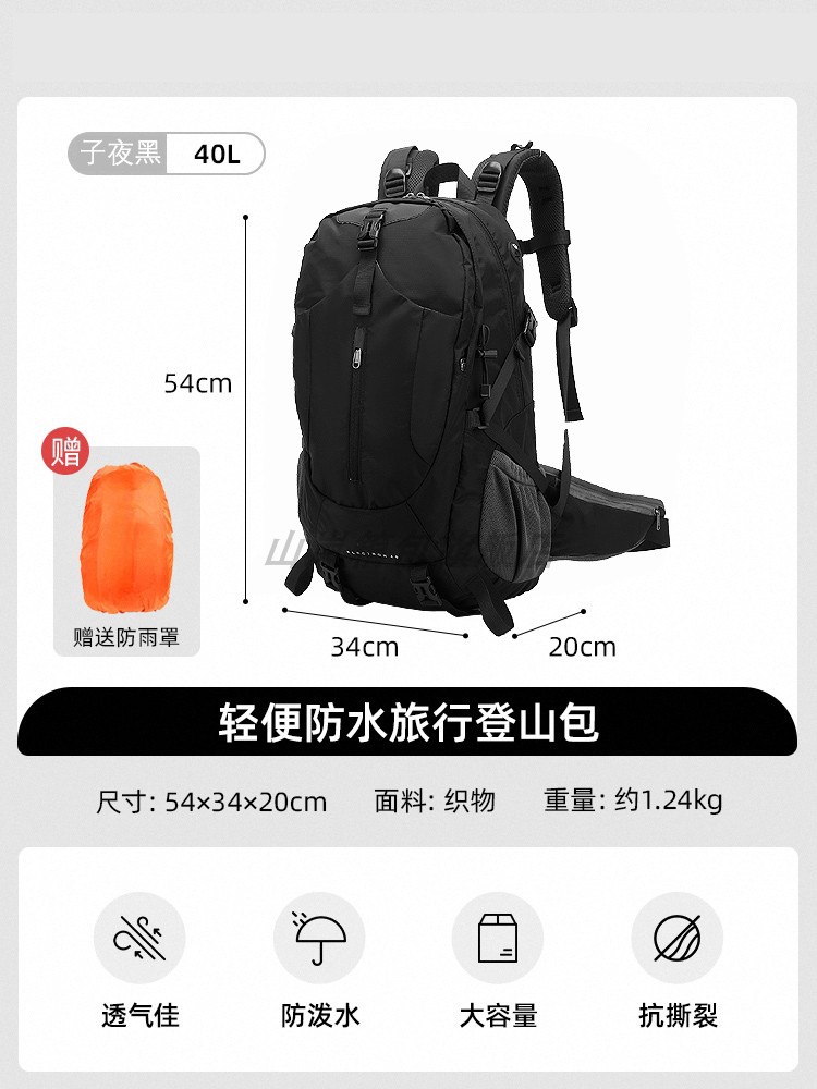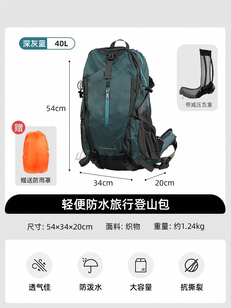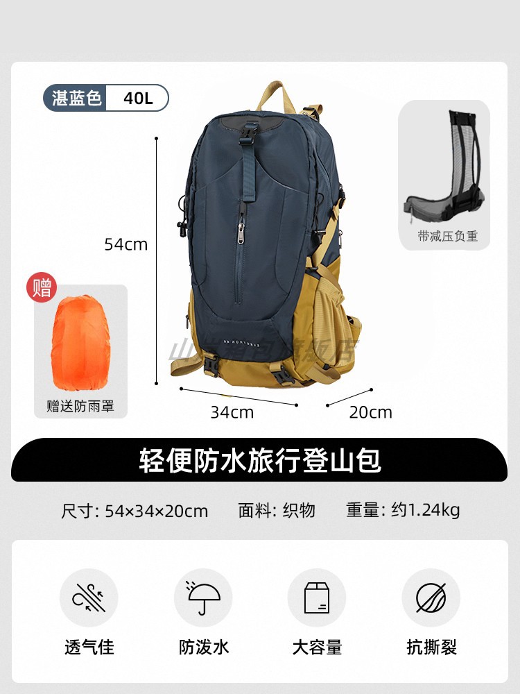 • 황금빛#2028 40L에는 압력 감소 운반이 없는 무료 레인 커버가 함께 제공됩니다.