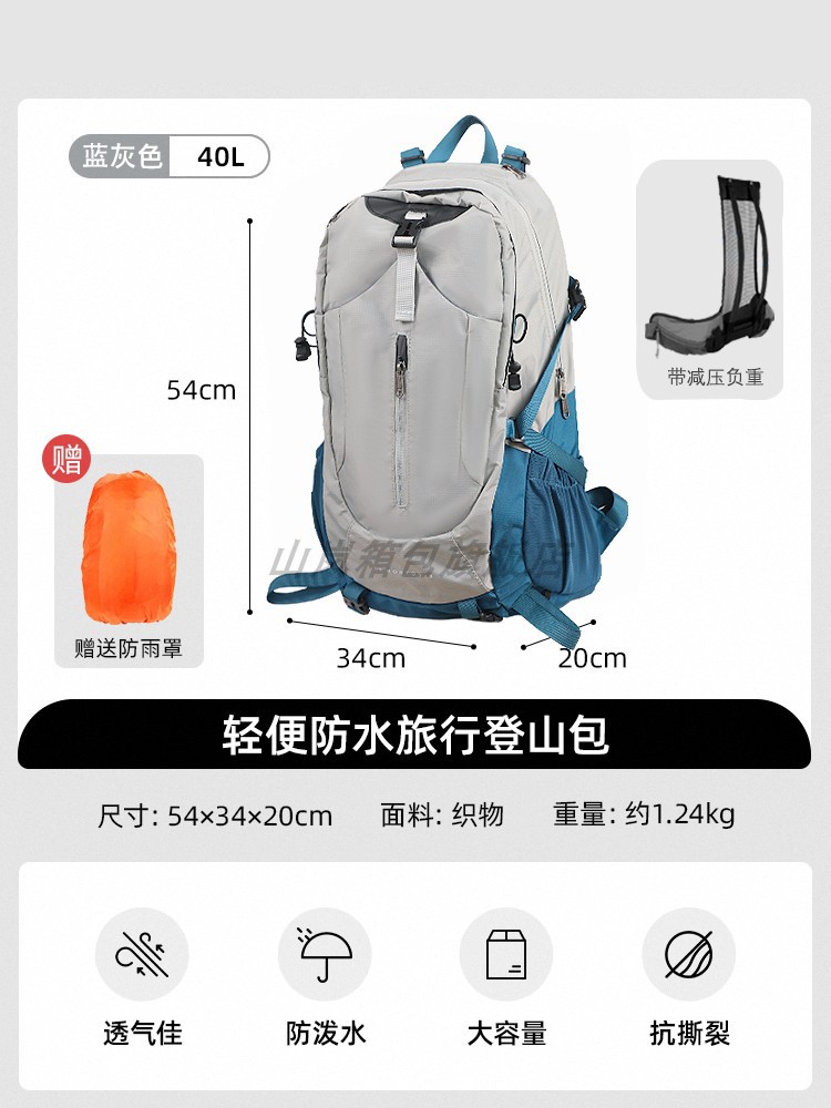 • 블루 그레이 # 2027 40L에는 감압 운반 기능이 있는 무료 레인 커버가 함께 제공됩니다.