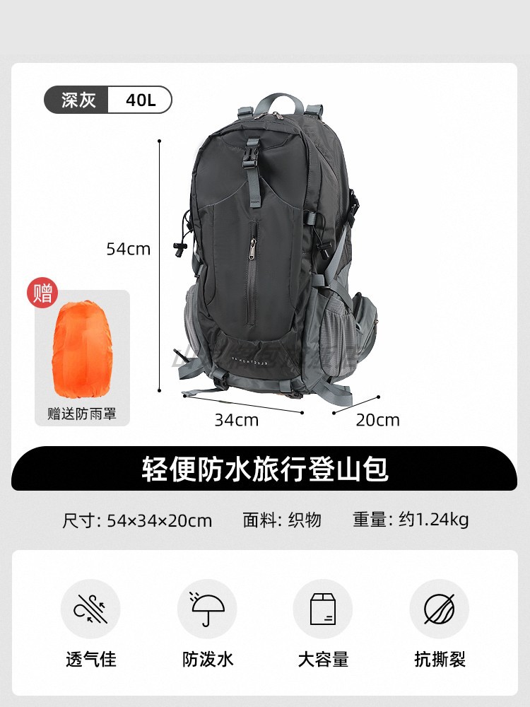 • 짙은 회색#2028 40L에는 압력 감소 운반이 없는 무료 레인 커버가 함께 제공됩니다.