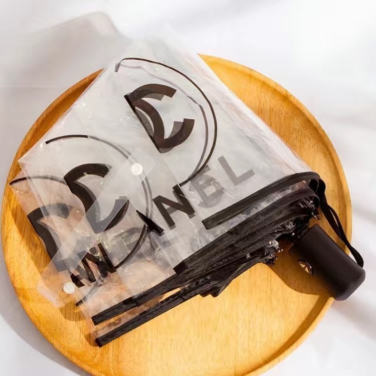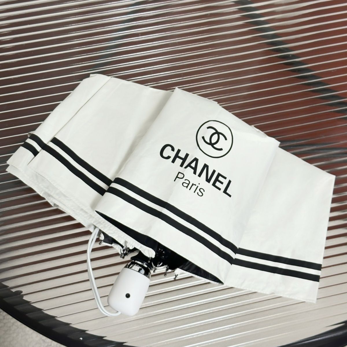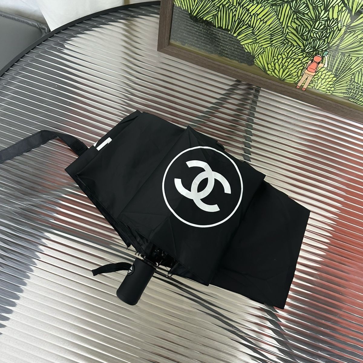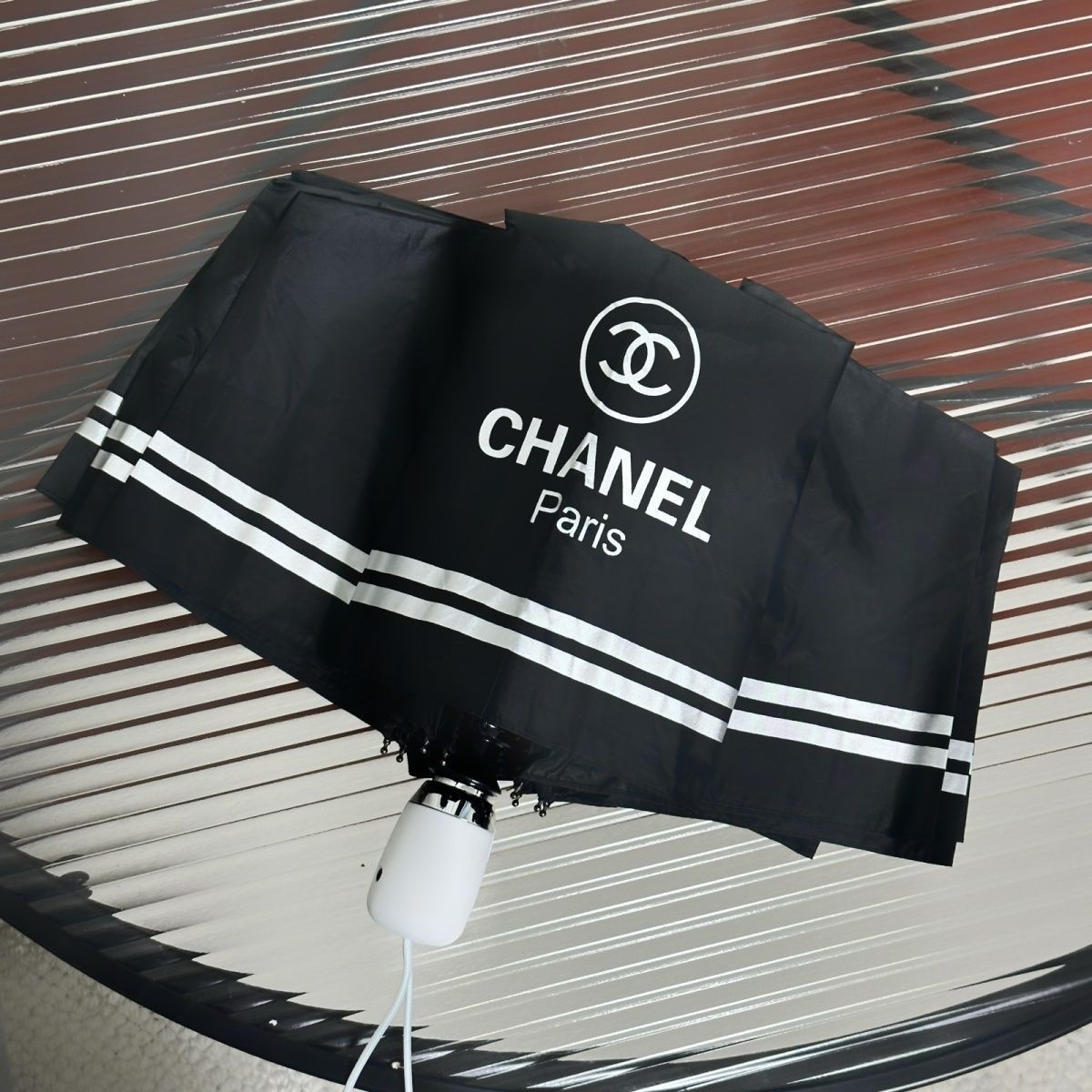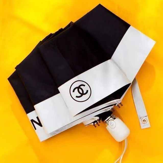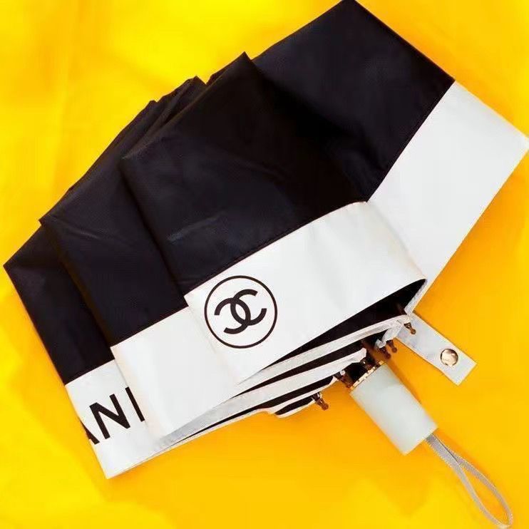 샤넬 스타일 간단한 흑백 복고풍 인터넷 레드 우산 더블 C 빅 브랜드 태양 우산 여성의 여름 접는 선 스크린 블랙 고무 햇빛