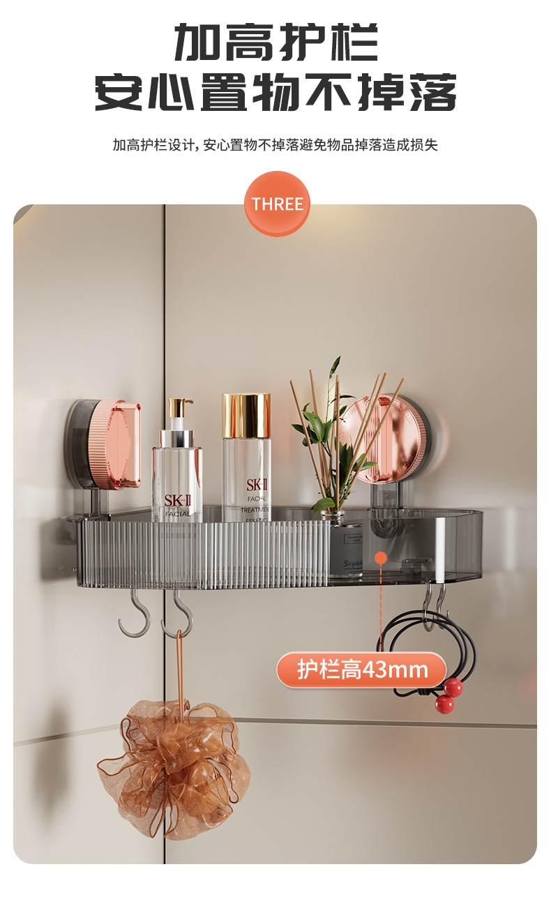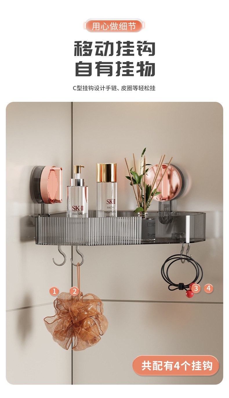 • 투명한 회색 [로즈 골드 빨판 회색 선반]]