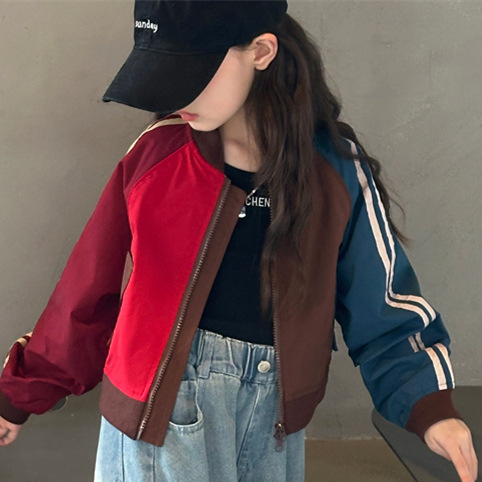 여아 봄, 가을 컬러 블록 지퍼 재킷 2025 새로운 한국식 중대형 아동 패션 긴팔 카디건 야구 유니폼스토어 가기