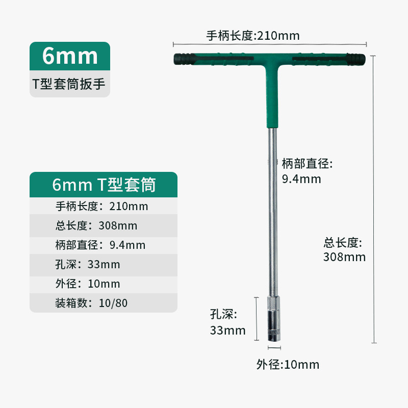 • 플라스틱 코팅 T형 소켓 렌치 6mm(박스당 10개, 80개)