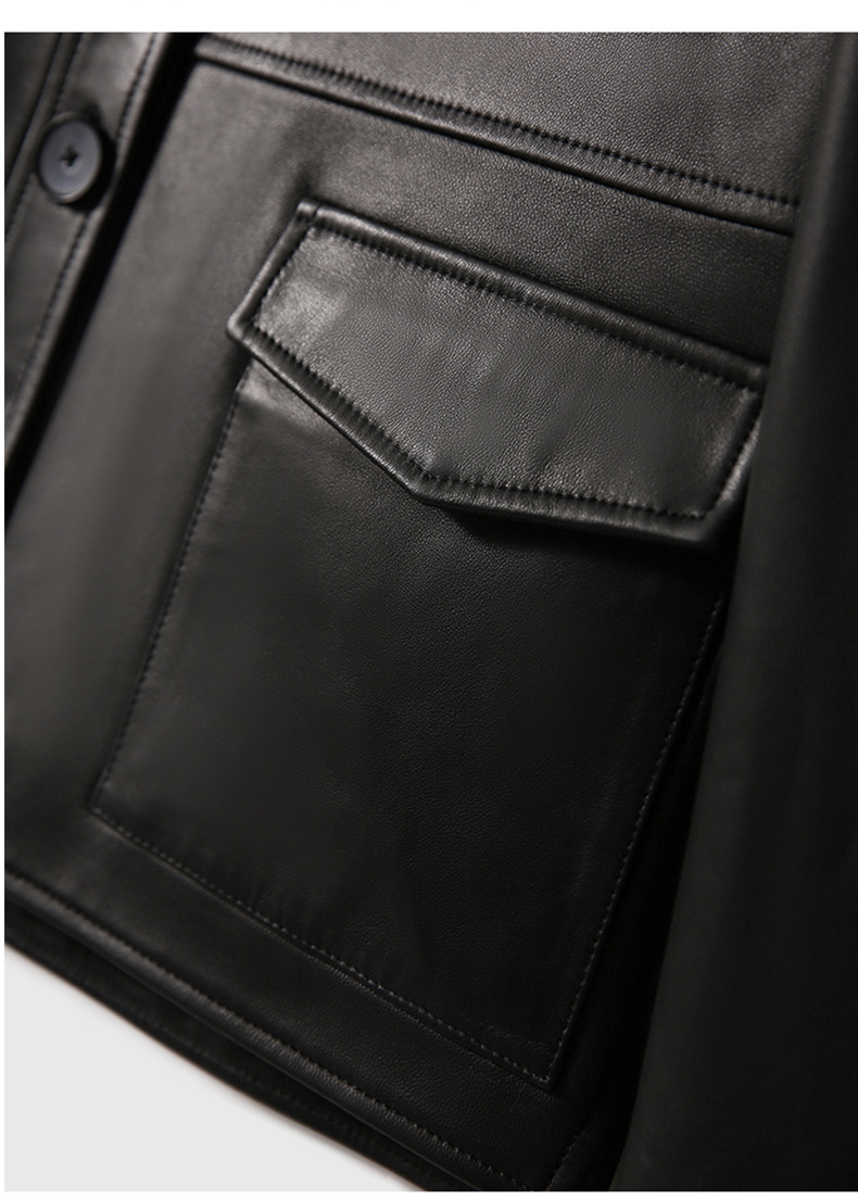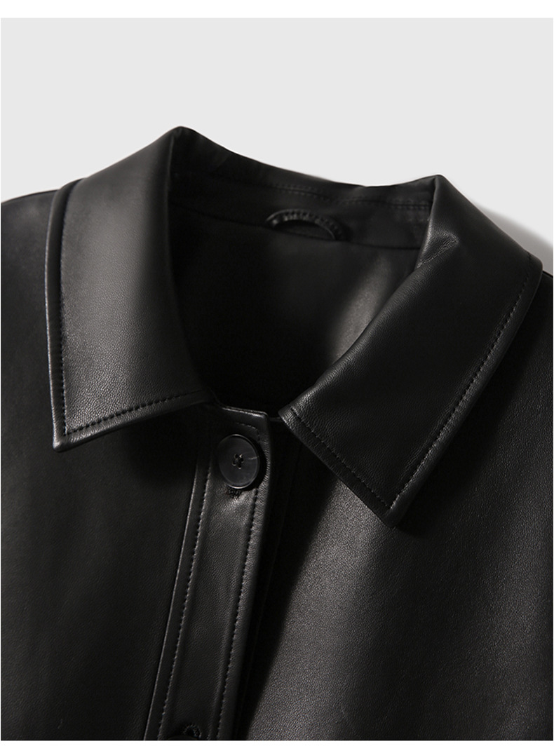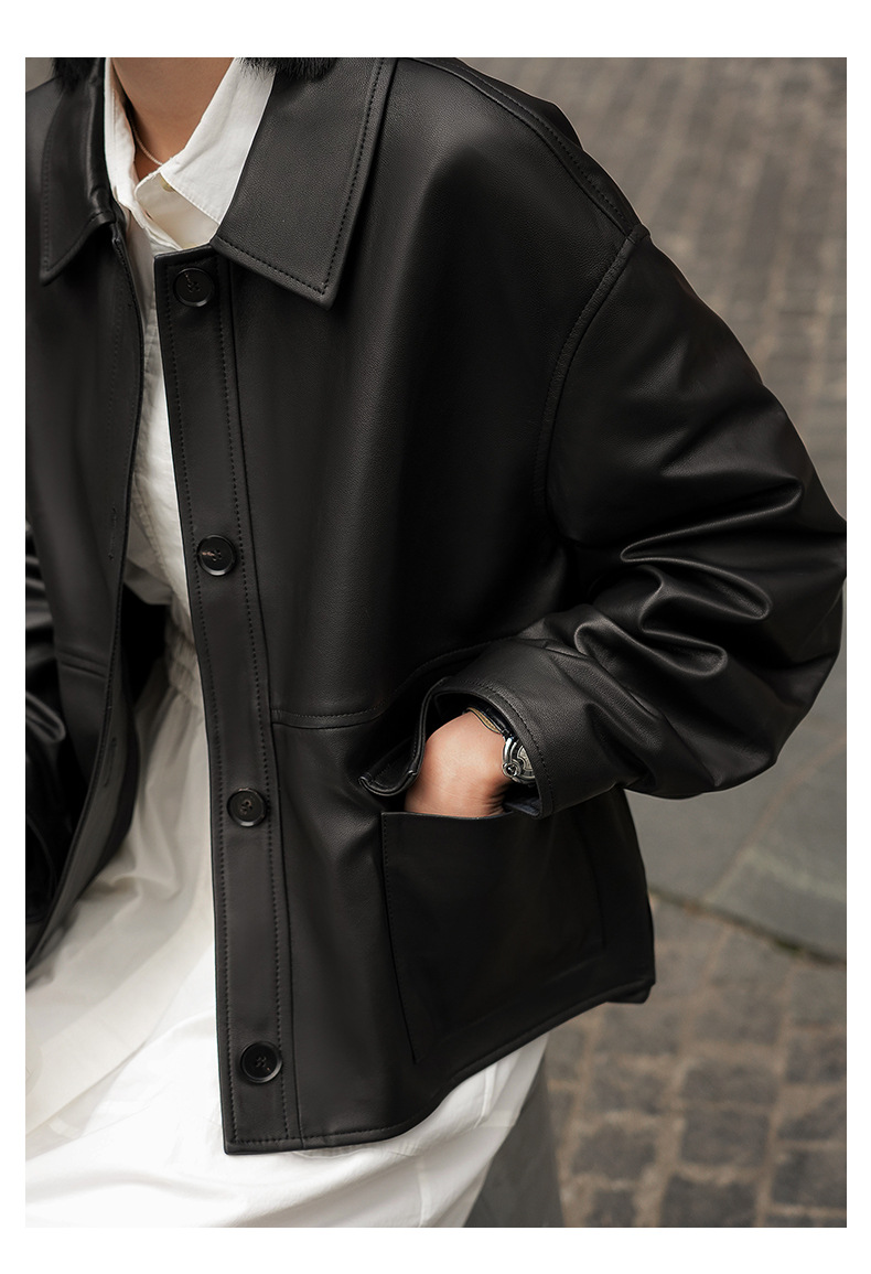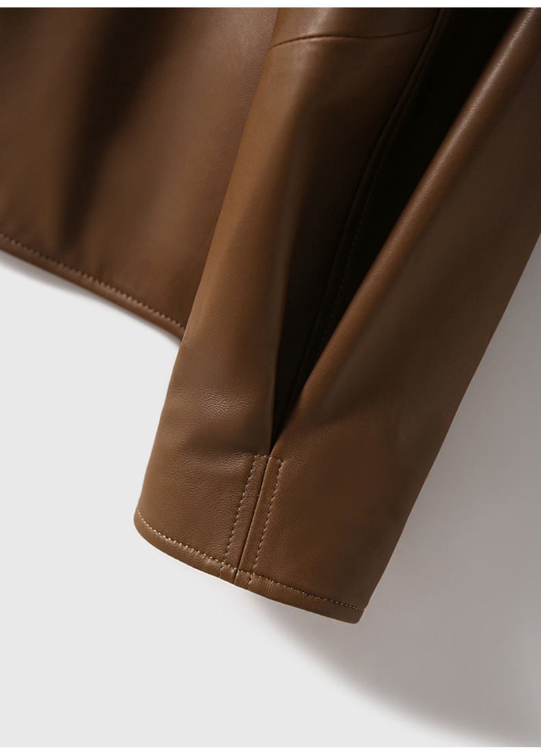 고급스러운 입체적인 가방형 카라 가죽 숏 재킷 여성용 가을 신상 2025 오토바이 스타일 슬림핏 코트 상의