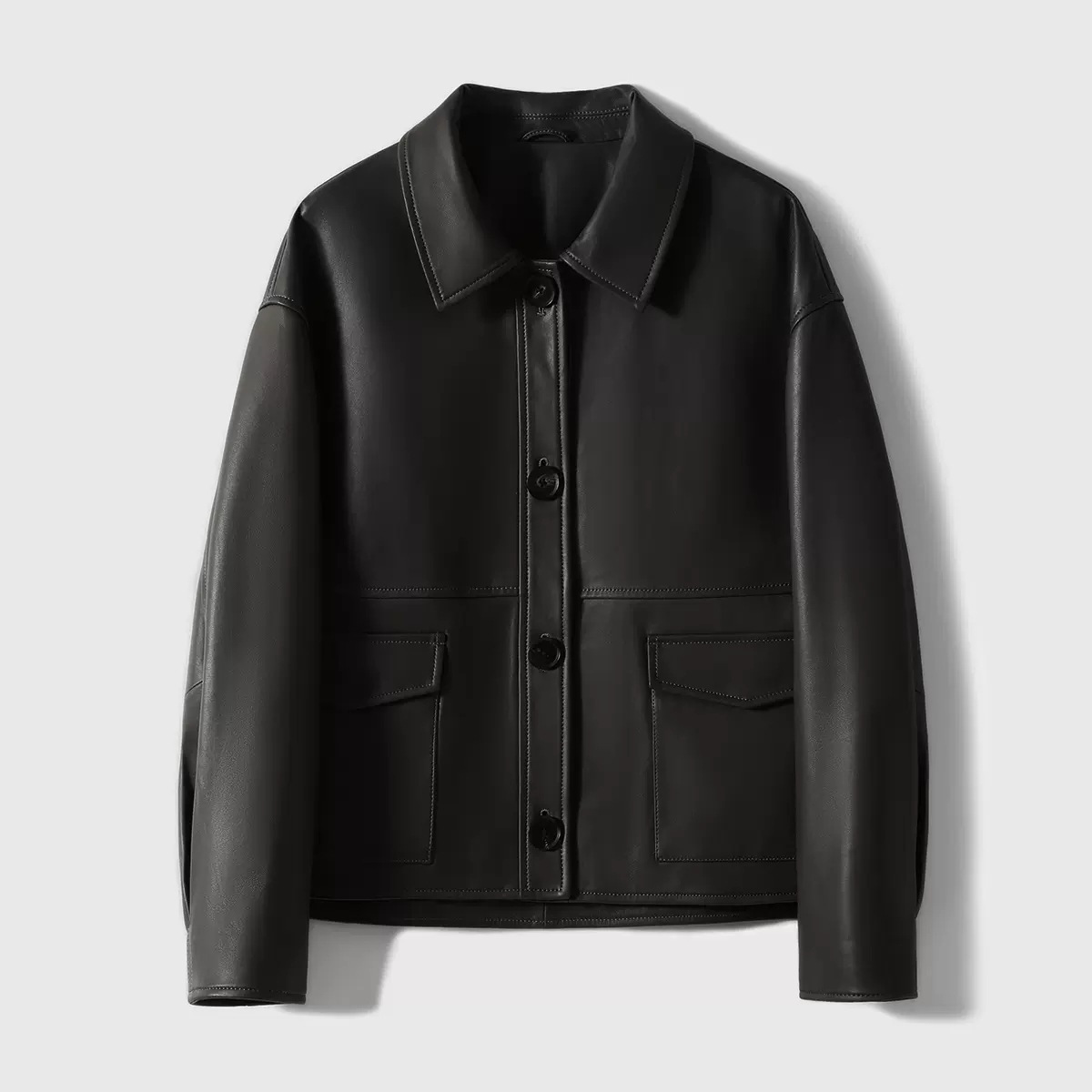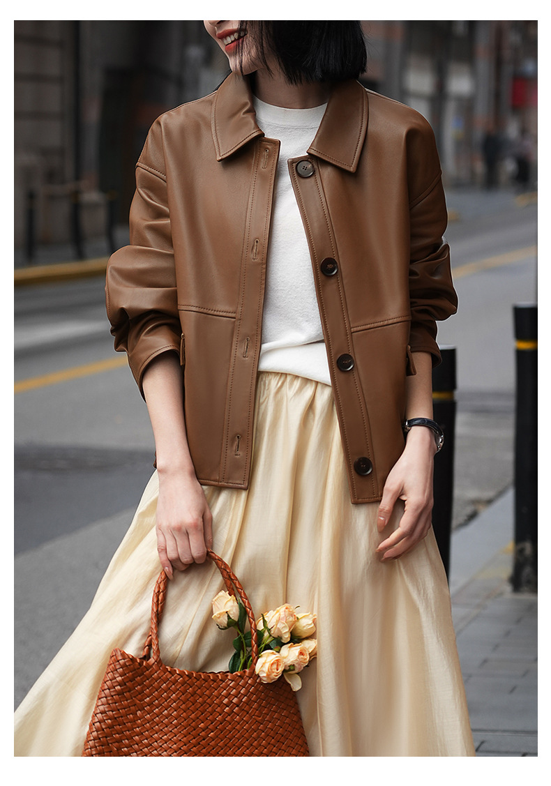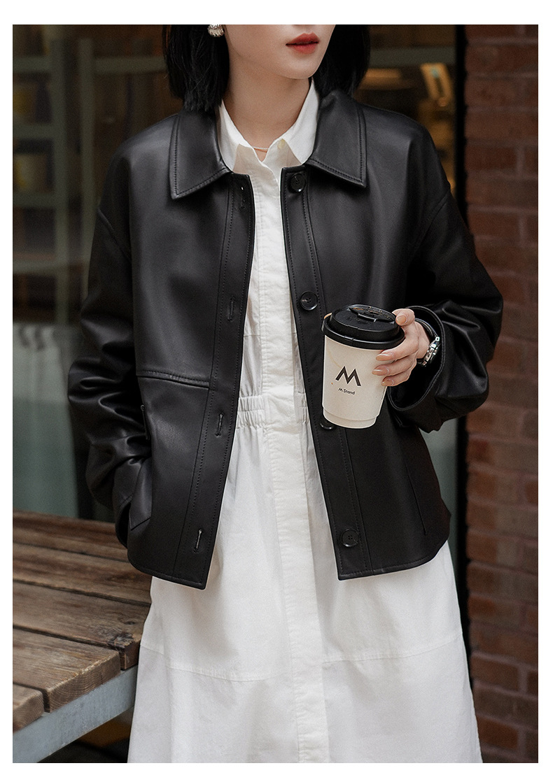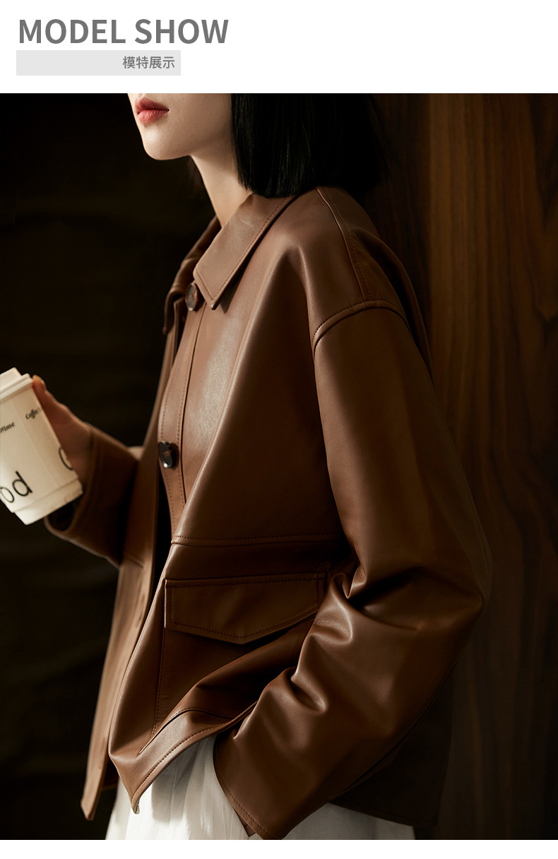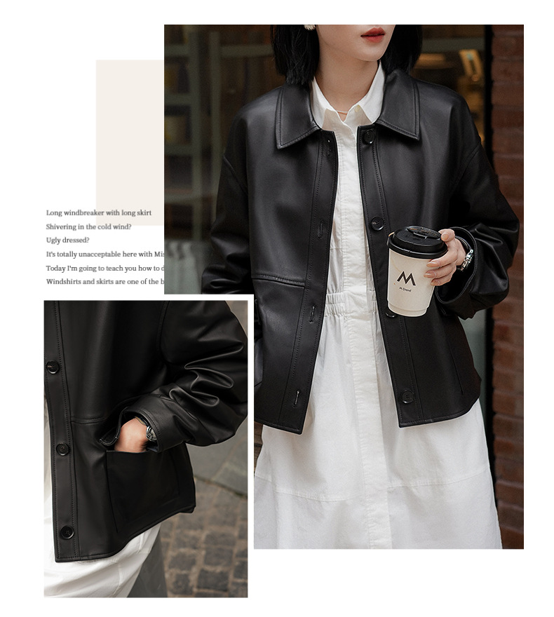 고급스러운 입체적인 가방형 카라 가죽 숏 재킷 여성용 가을 신상 2025 오토바이 스타일 슬림핏 코트 상의스토어 가기