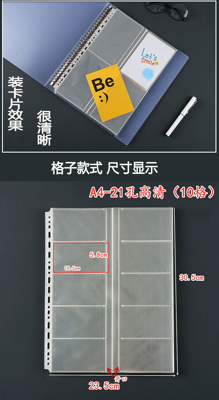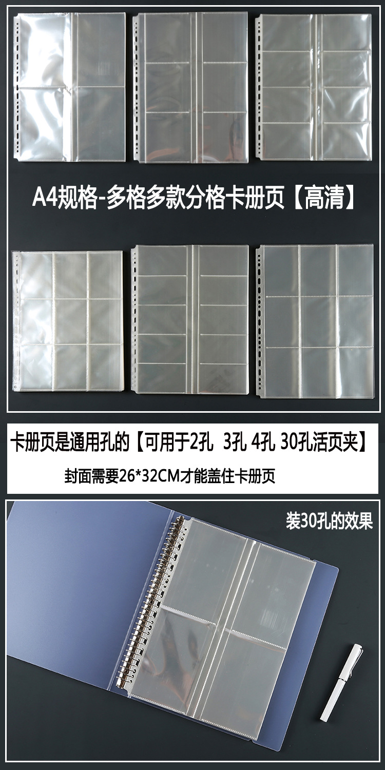 카드 책 느슨한 잎 명함 저장 책 A4 카드 컬렉션 책 스퀘어 카드 레이저 티켓 내부 페이지 보호 필름 대용량 삽입