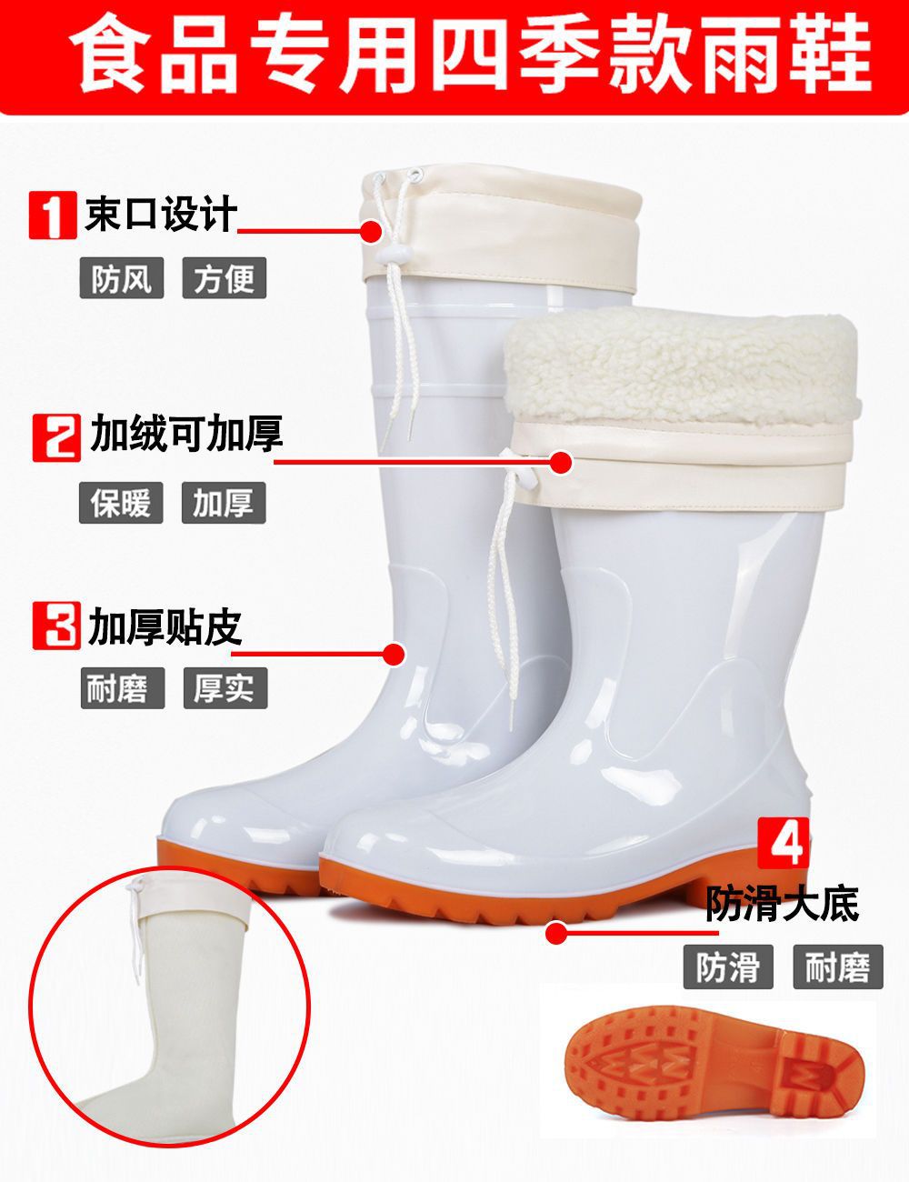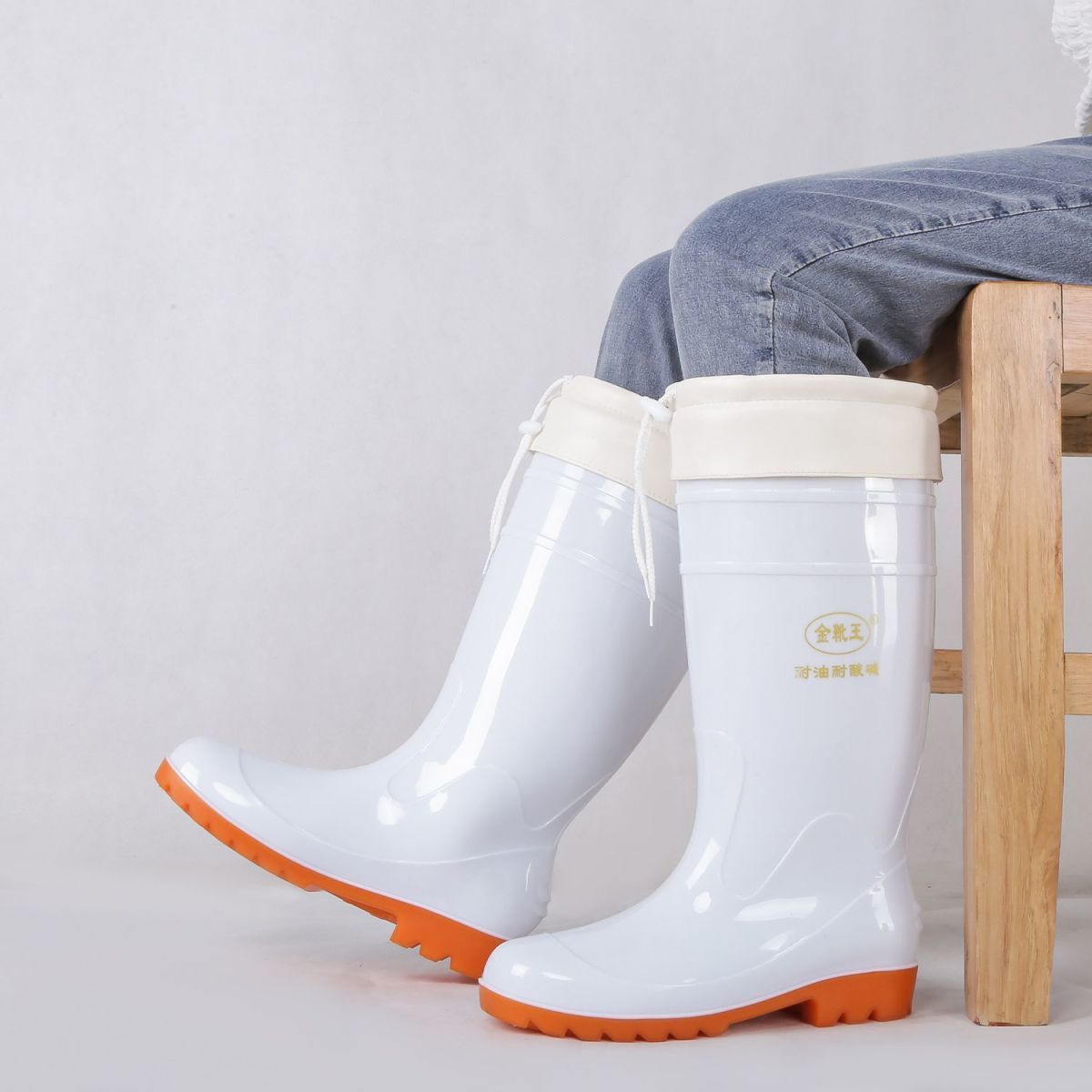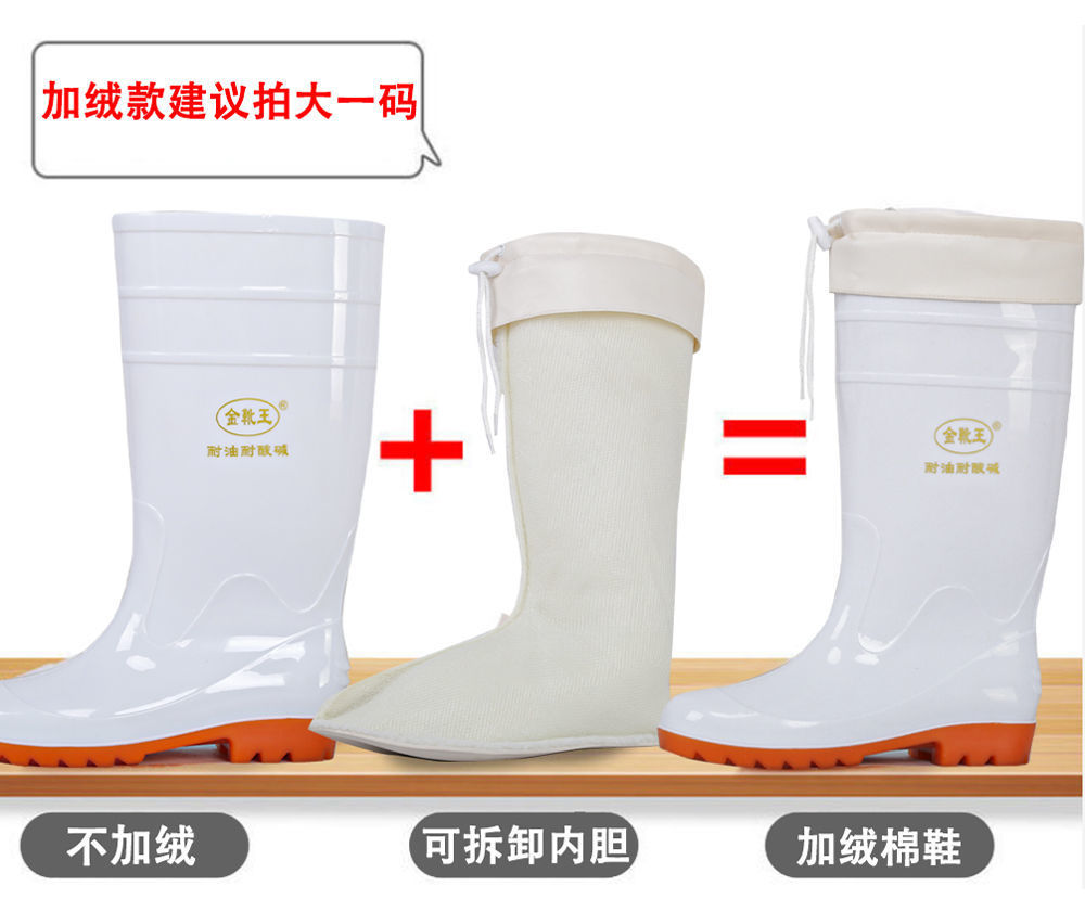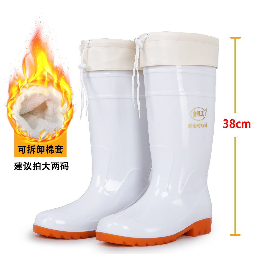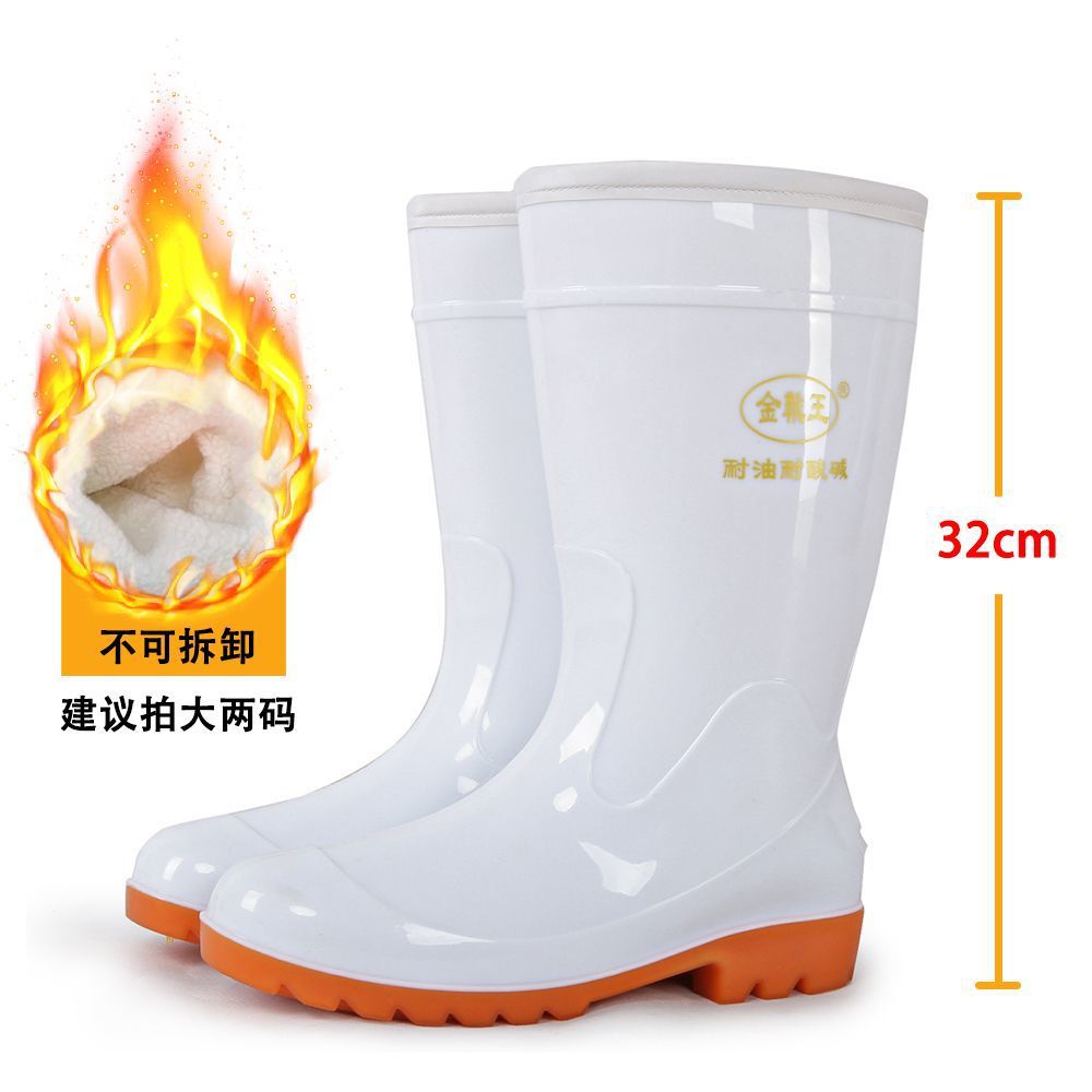 식품 공장 화이트 코튼 비 부츠 높은 내마모성 미끄럼 비 장화 기모 따뜻한 물 신발 남성 노동 보호 작업 수생 제품스토어 가기