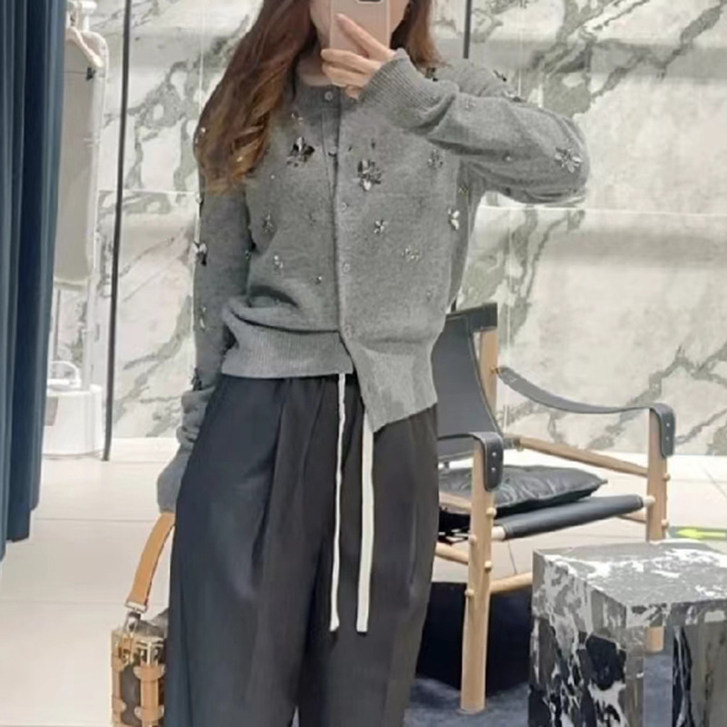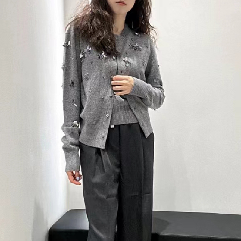 2024 가을 신상품 패셔너블하고 다재다능한 수제 다이아몬드 장식 긴팔 라운드넥 니트 가디건 여성용 3CAR021스토어 가기