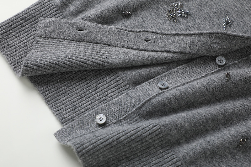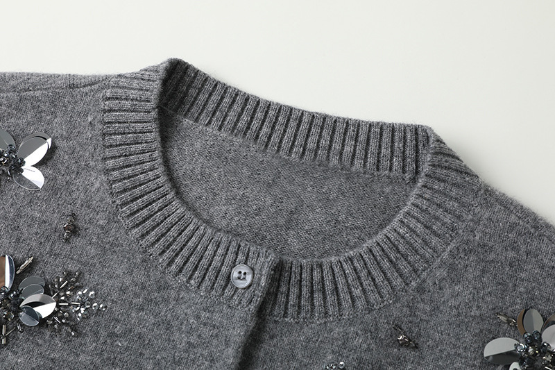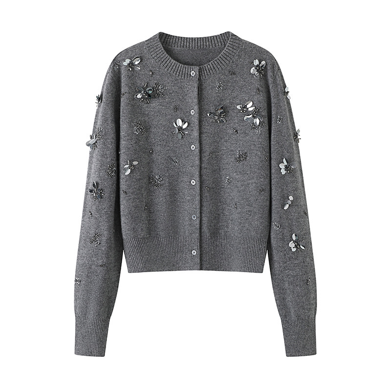 2024 가을 신상품 패셔너블하고 다재다능한 수제 다이아몬드 장식 긴팔 라운드넥 니트 가디건 여성용 3CAR021