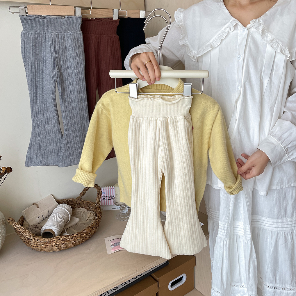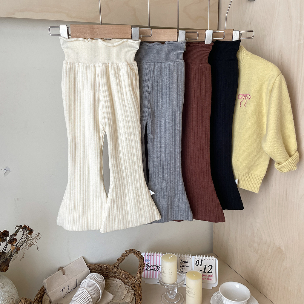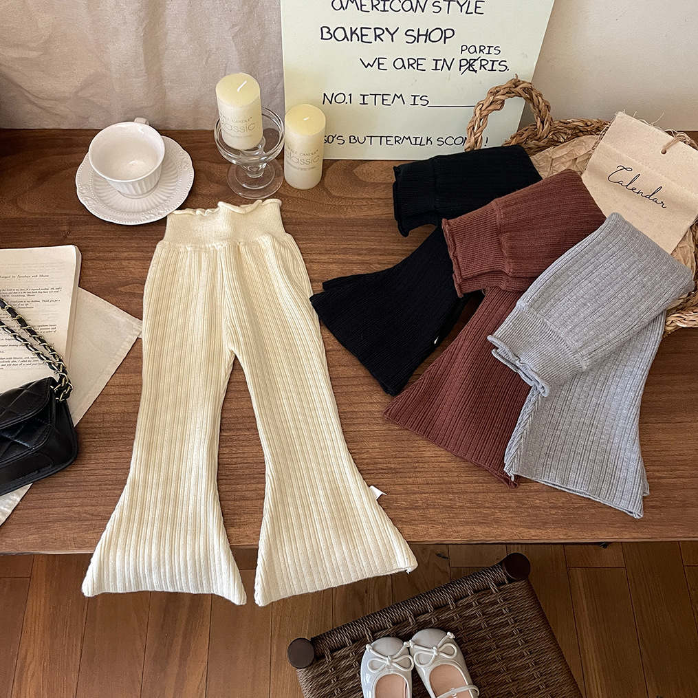 2025 가을 겨울 한국 여아용 모직 바지, 니트 나팔바지, 유아용 신축성 있는 바지, 아동용 바지, 패셔너블한 여아용 바지스토어 가기