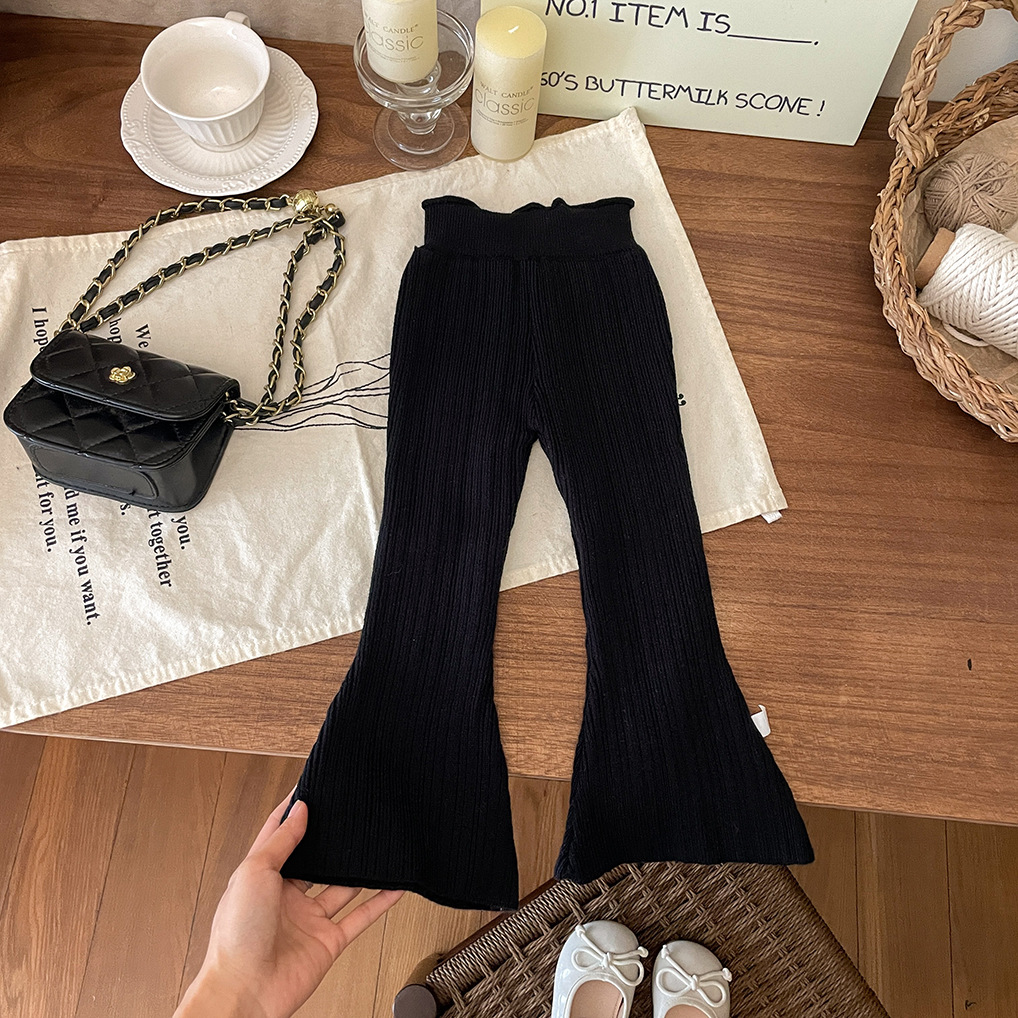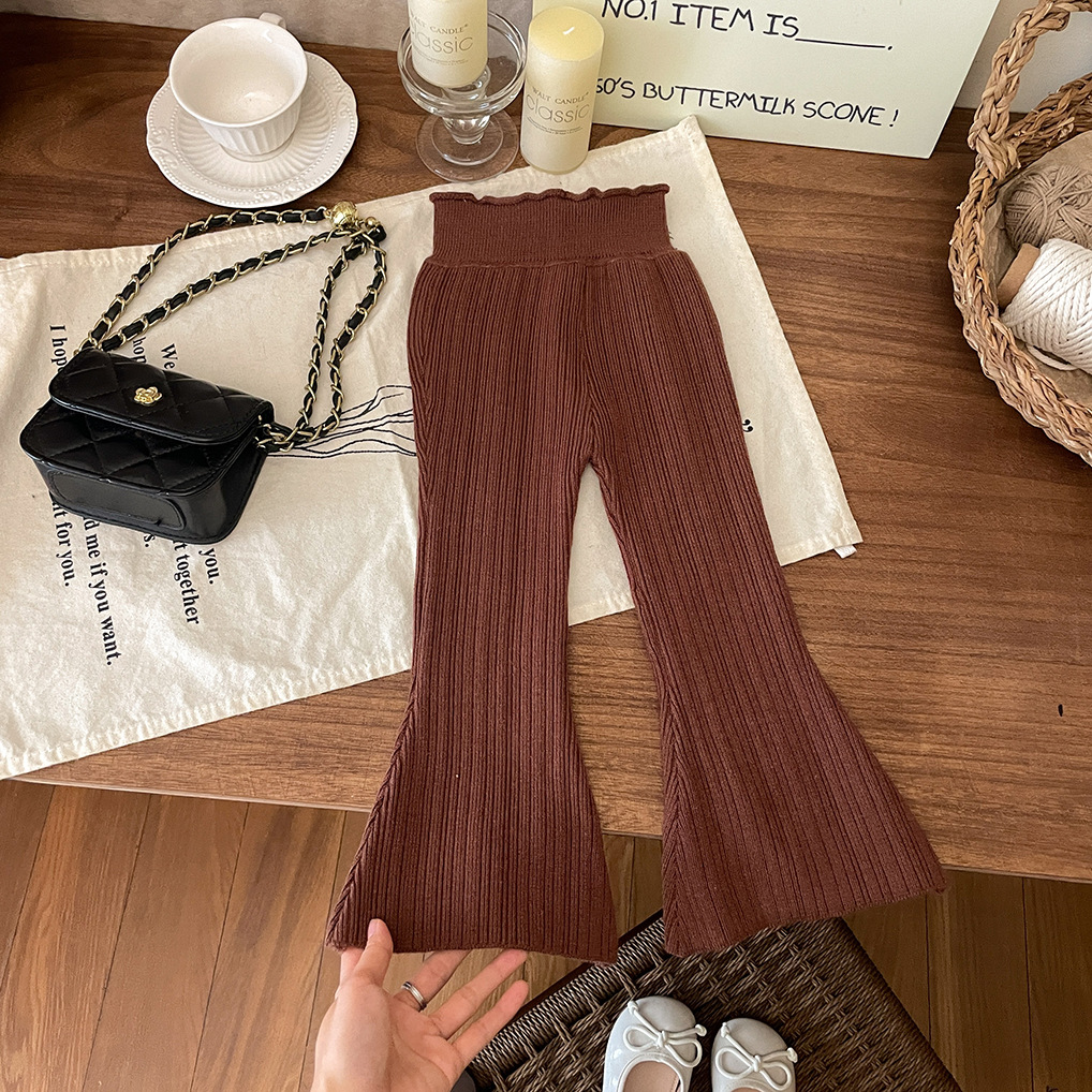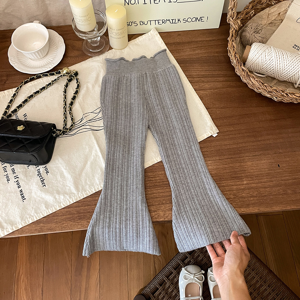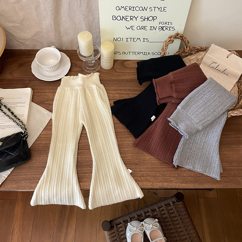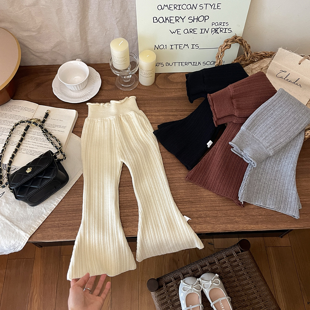 2025 가을 겨울 한국 여아용 모직 바지, 니트 나팔바지, 유아용 신축성 있는 바지, 아동용 바지, 패셔너블한 여아용 바지