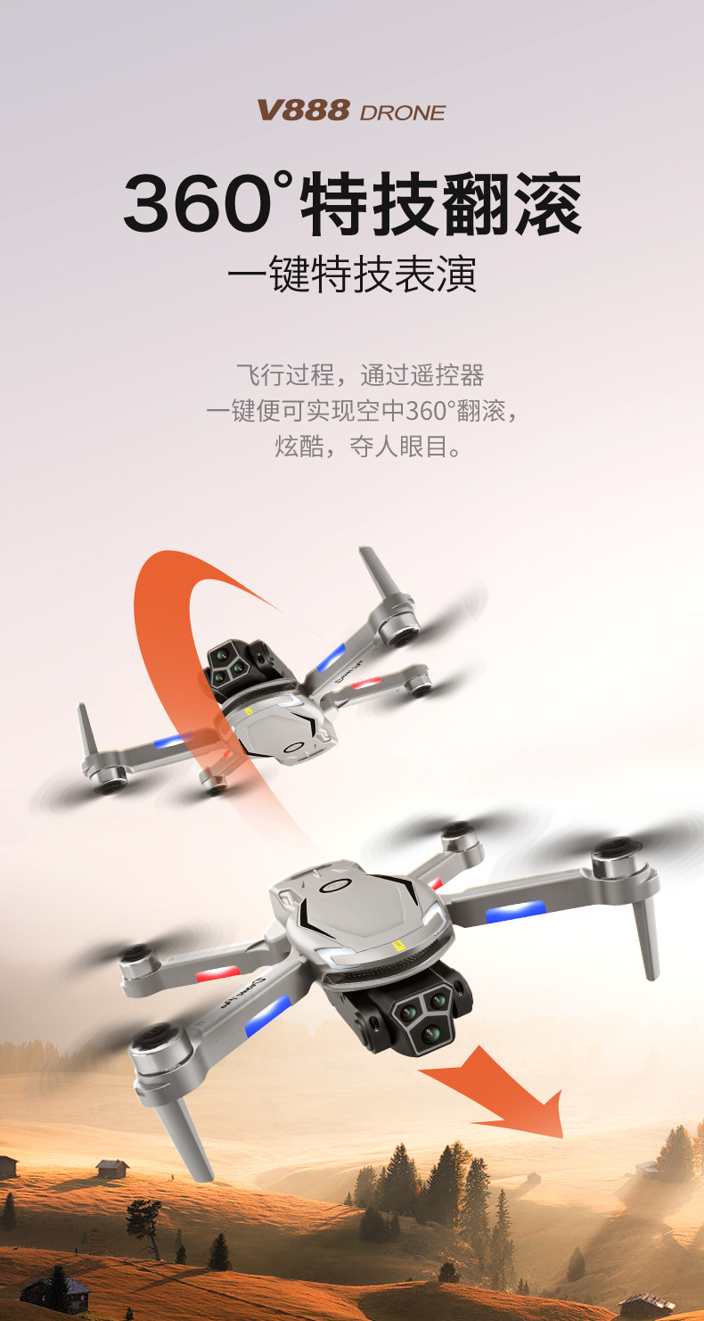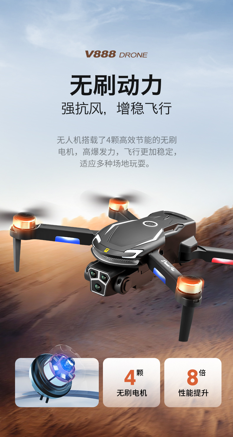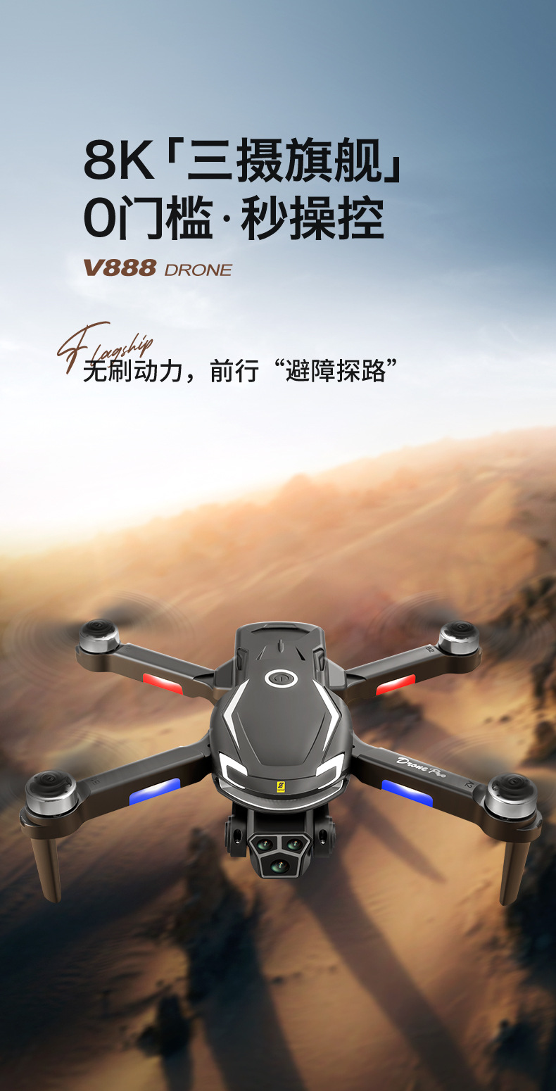 국경 간 V888 장난감 원격 제어 항공기 HD 8K 항공 사진 긴 내구성 4 축 브러시리스 장애물 회피 드론 드론스토어 가기