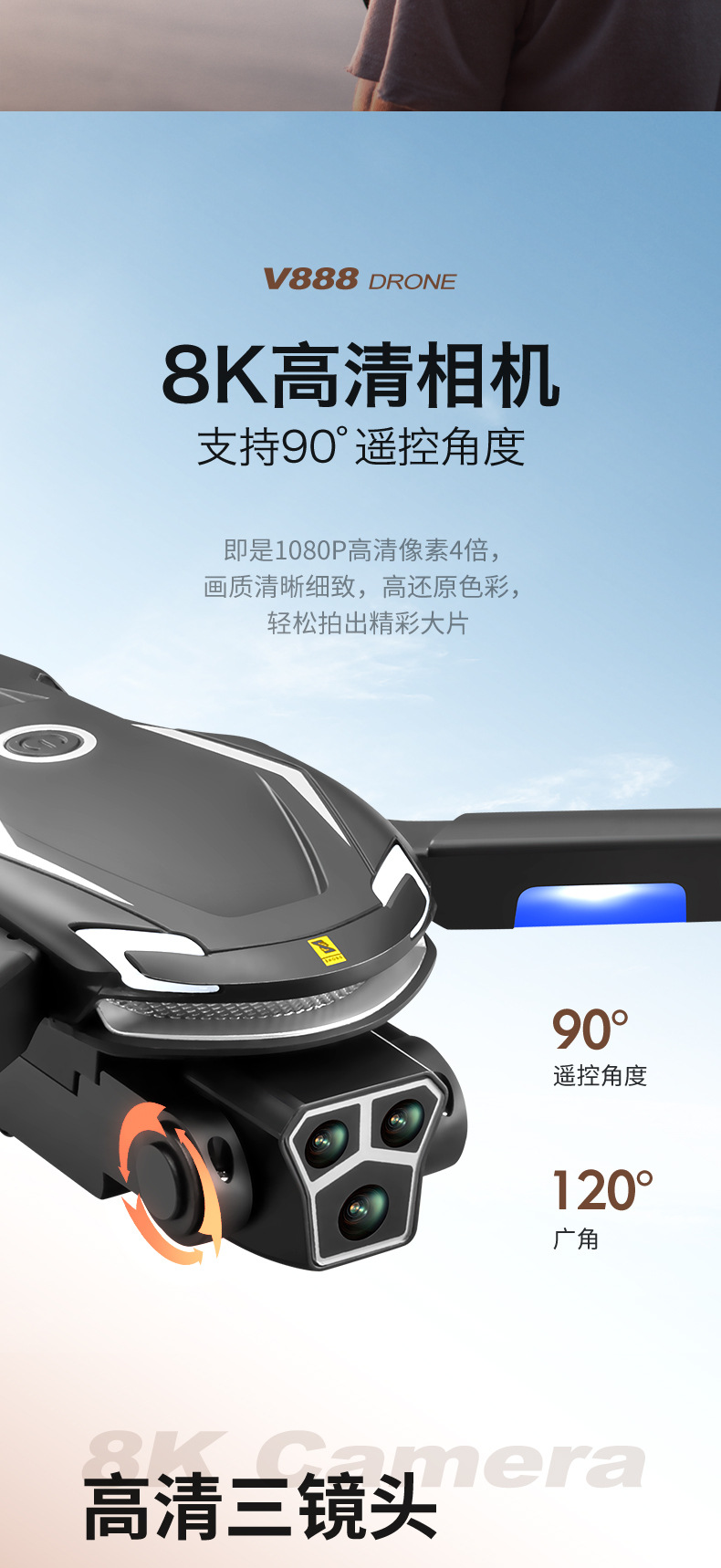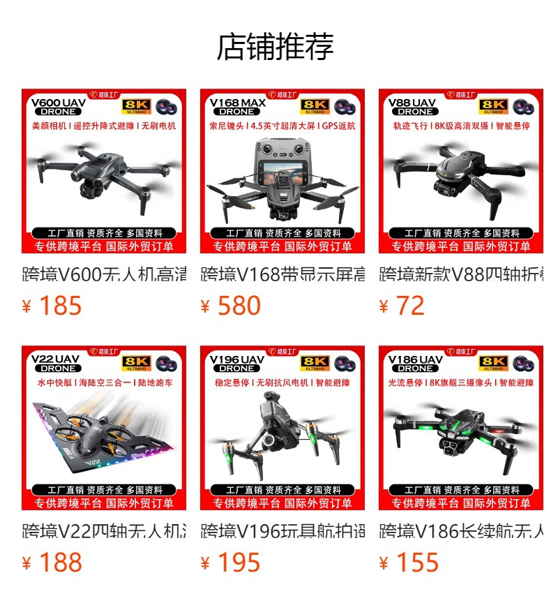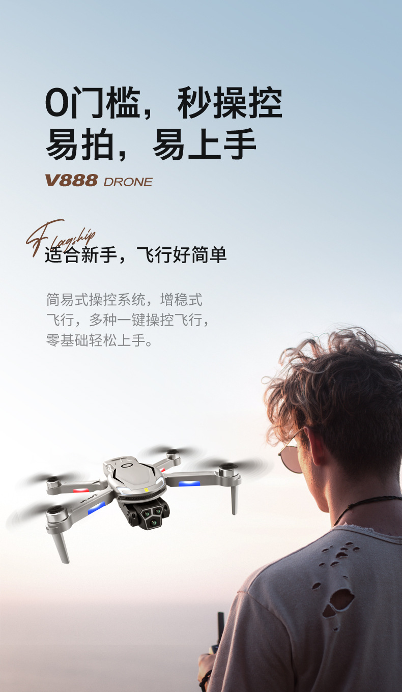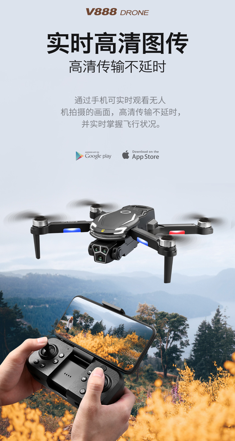 국경 간 V888 장난감 원격 제어 항공기 HD 8K 항공 사진 긴 내구성 4 축 브러시리스 장애물 회피 드론 드론스토어 가기