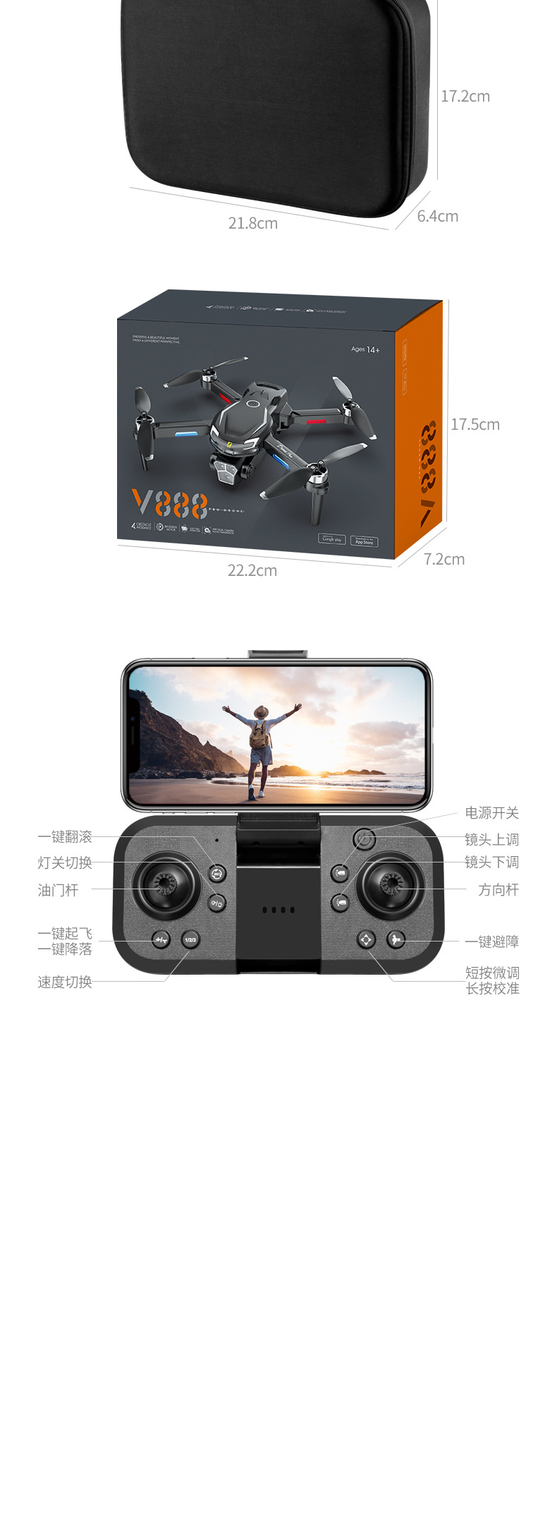 • V888 블랙 [브러시리스 + 장애물 회피 + 광학 흐름 포지셔닝]