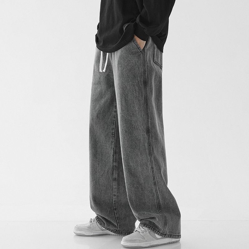 새로운 남성 청바지 남자 2024 느슨한 스트레이트 Ins 하이 스트리트 느슨한 허리 캐주얼 와이드 레그 팬츠스토어 가기