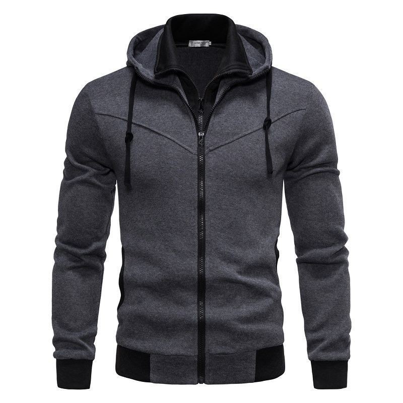 2024 대외 무역 국경 남성 스웨터 패션 캐주얼 가짜 투피스 슬림 핏 명암 컬러 후드 카디건 남자 새 스웨터