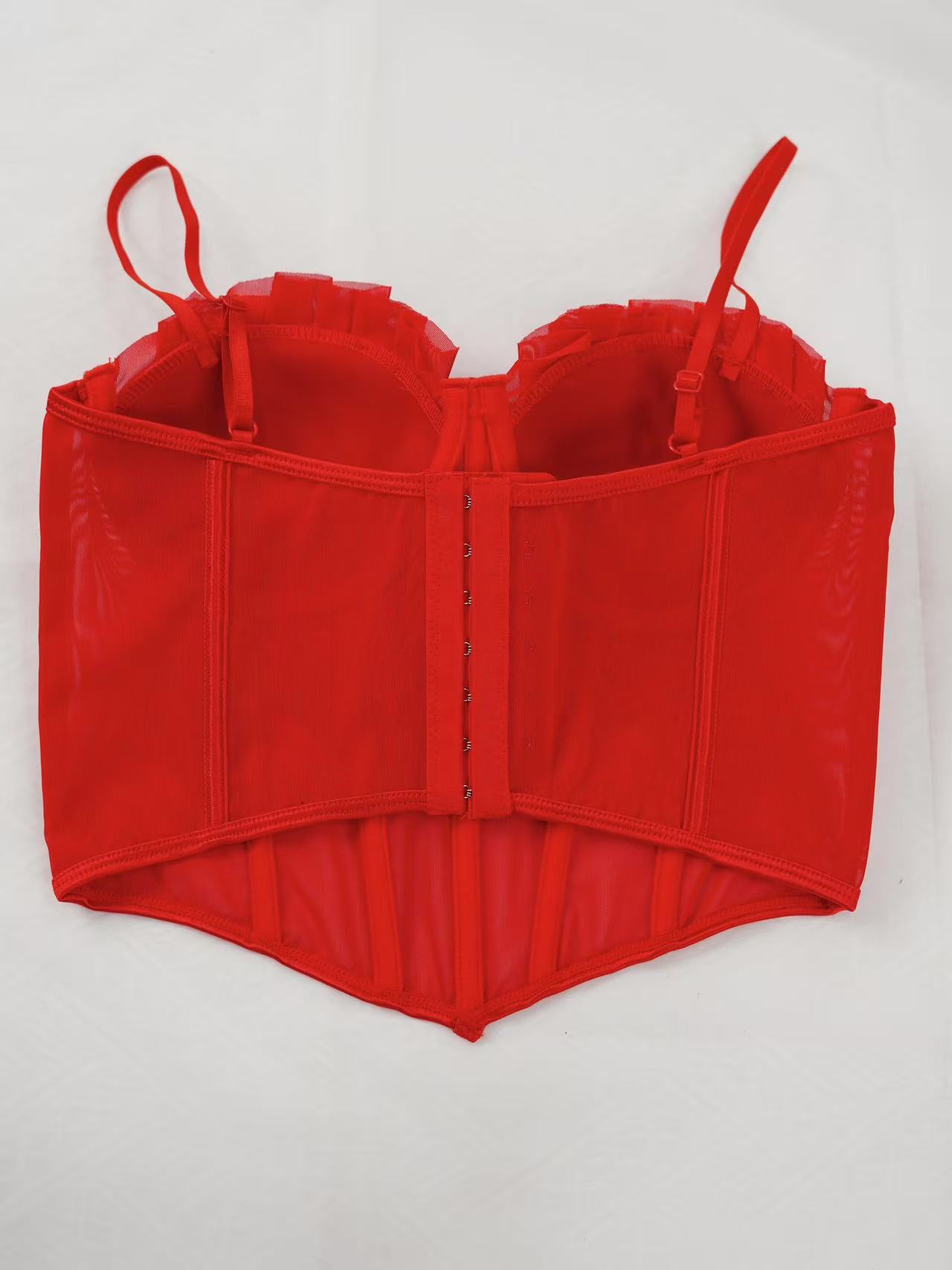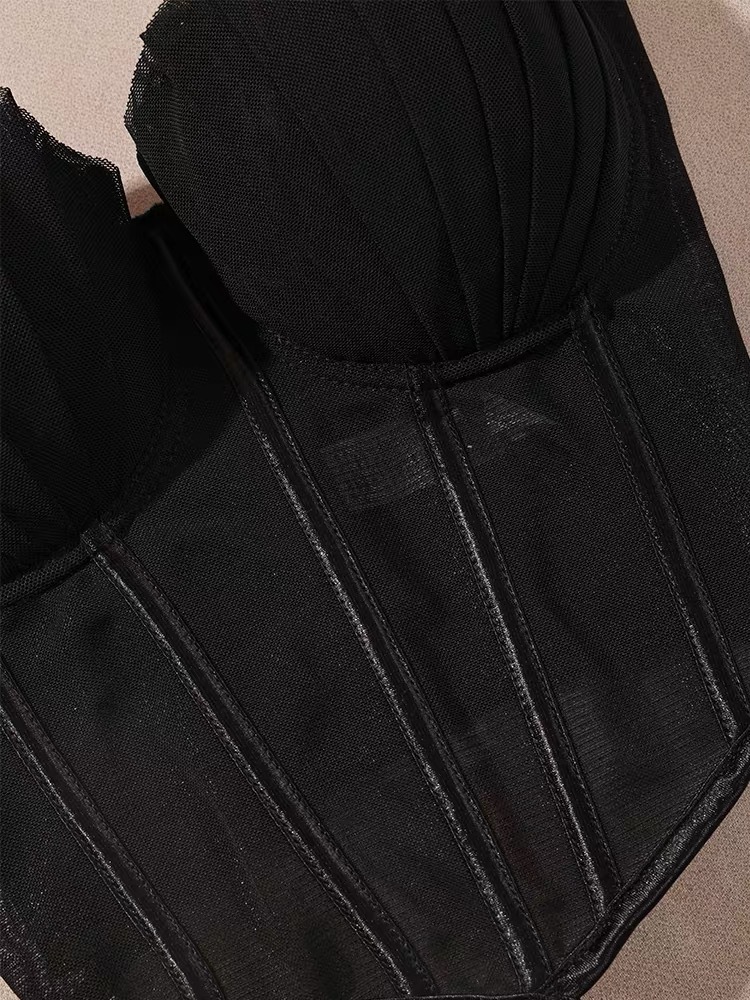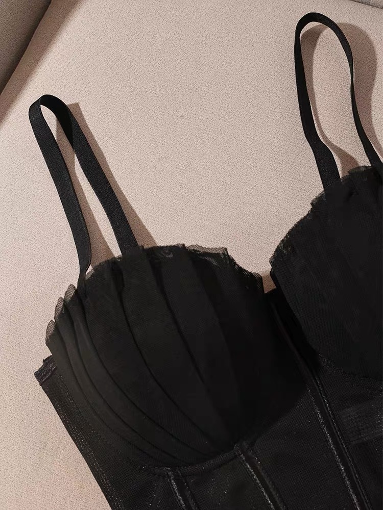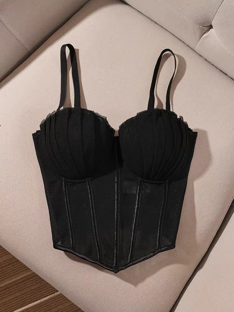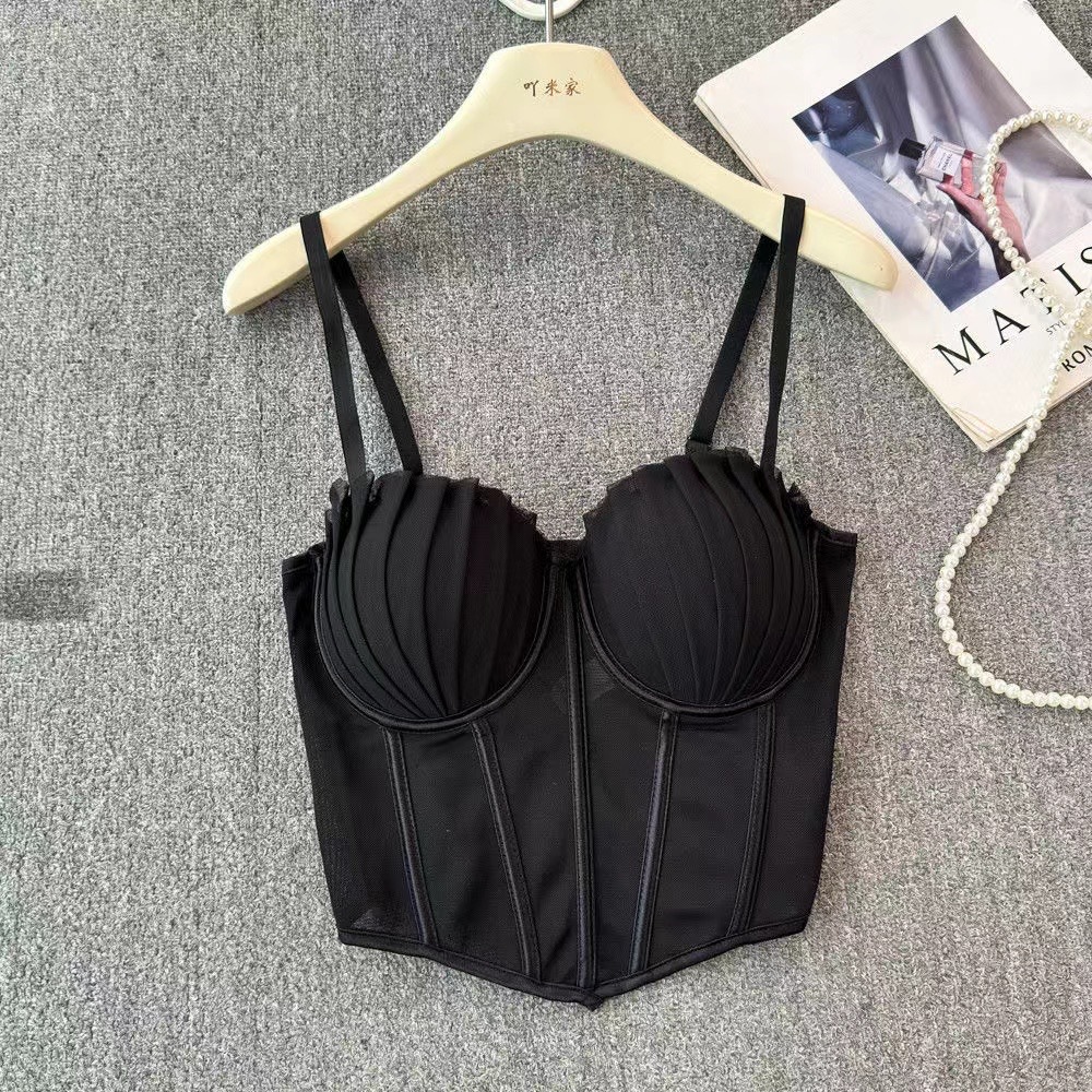 뜨거운 소녀 섹시한 코르셋 슬링 여름 조끼 베이스 여성 내부 레이스 외부 슬림 핏 짧은 물고기 뼈 블랙 탑
