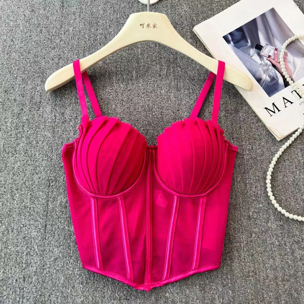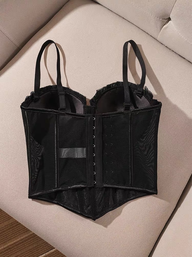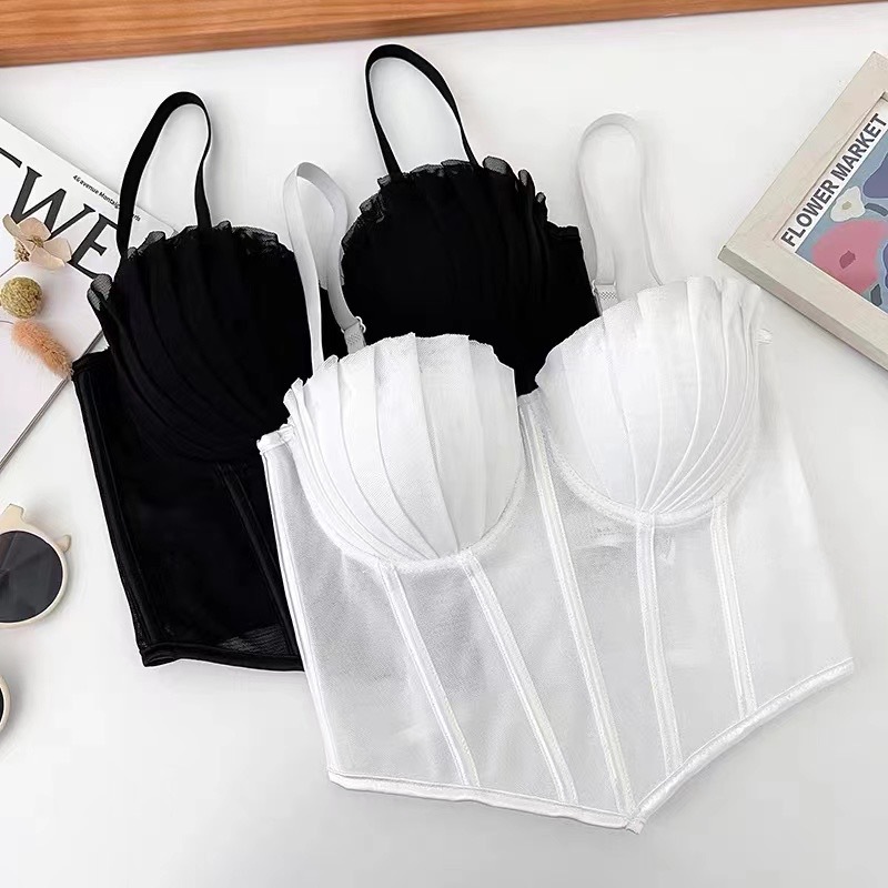 뜨거운 소녀 섹시한 코르셋 슬링 여름 조끼 베이스 여성 내부 레이스 외부 슬림 핏 짧은 물고기 뼈 블랙 탑스토어 가기