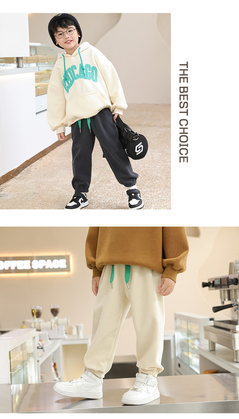 가을과 겨울 어린이 유럽면 벨벳 외부 따뜻한 캐주얼 바지를 입고 기모 소년 소녀를위한 두꺼운 양면 벨벳 바지스토어 가기