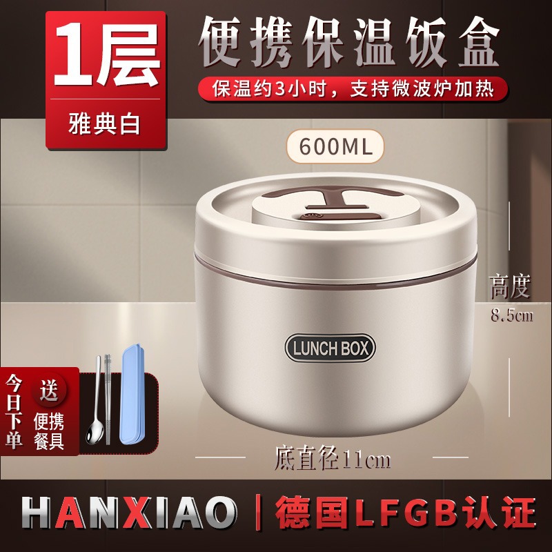 • [304 전자레인지 사용 가능 모델] 엘레강트 화이트 - 대형 600ml 2개 + 무료 식기 + 보온 가방