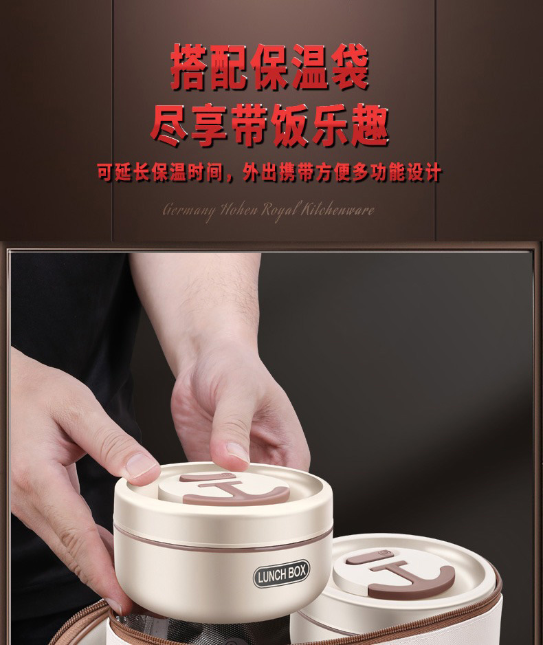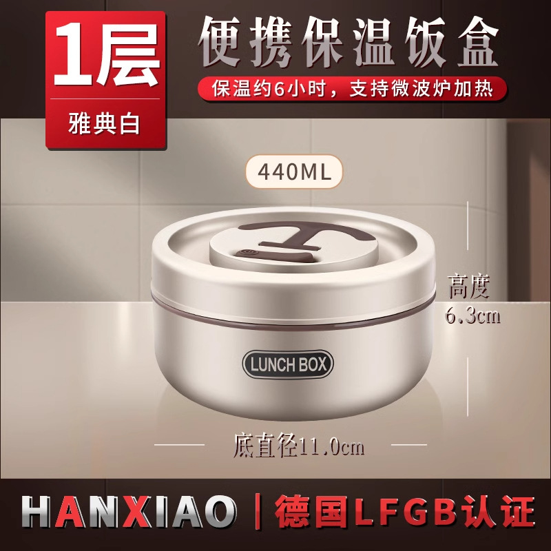 • [304 전자레인지 사용 가능 모델] 엘레강트 화이트 - 대형 600ml 1개 + 소형 440ml 1개 + 무료 식기 + 보온 가방