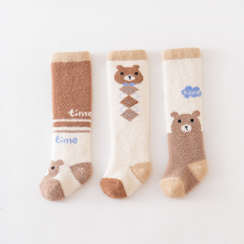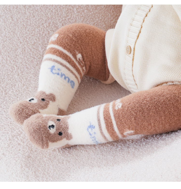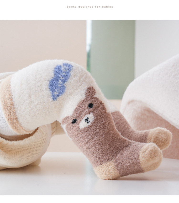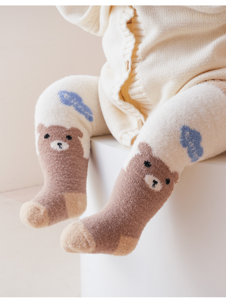 아이들의 가을과 겨울 기모 두꺼운 아기 스타킹 귀여운 느슨한 봉제 아기의 커프 양말 아이들의 따뜻한 양말