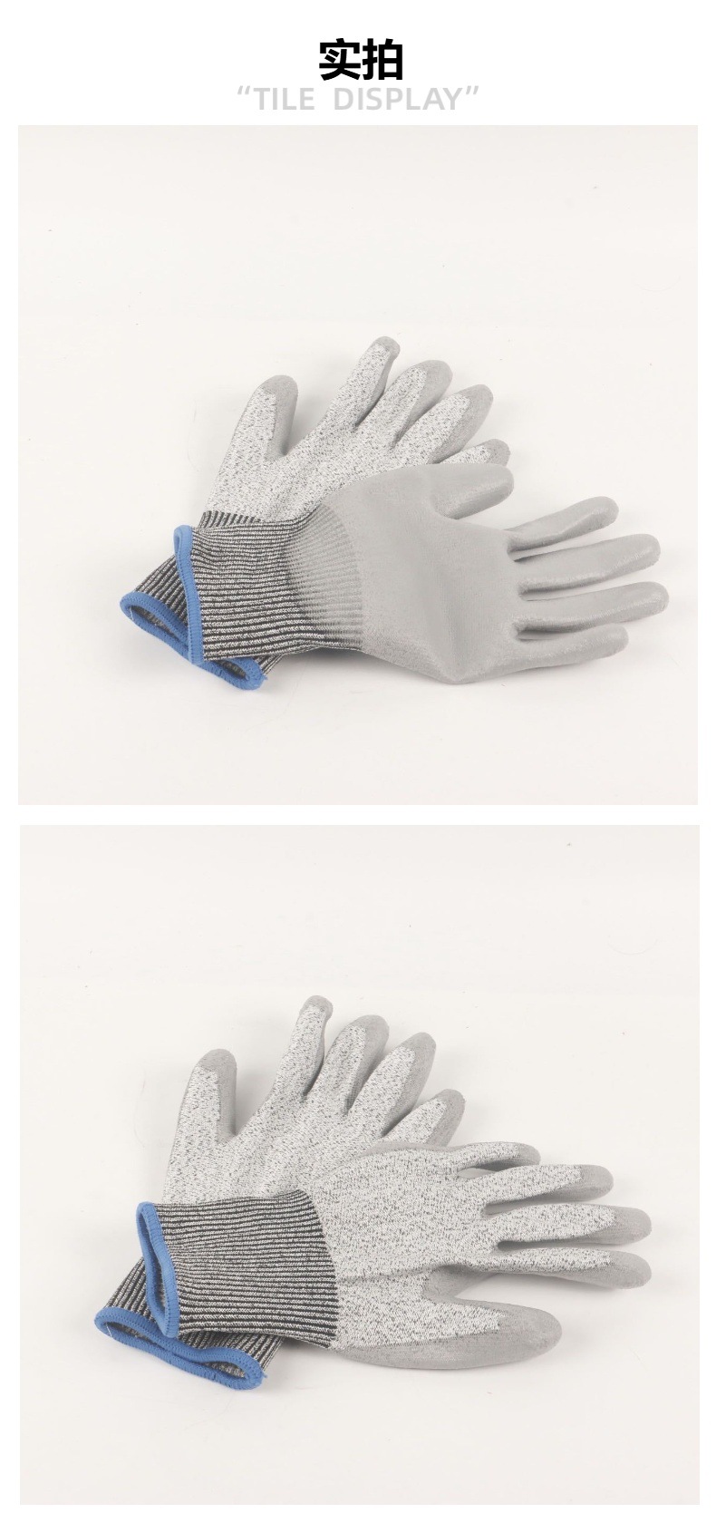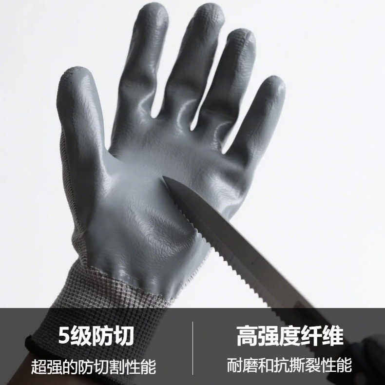 PU 담그는 절단 방지 장갑 등급 5 대마 재 커프 13 바늘 니트릴 절단 방지 노동 장갑 산업용 내마모성 코팅
