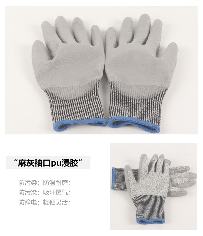• 레벨 5 베임 방지 대마 회색 커프스