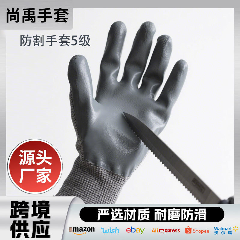 PU 담그는 절단 방지 장갑 등급 5 대마 재 커프 13 바늘 니트릴 절단 방지 노동 장갑 산업용 내마모성 코팅스토어 가기