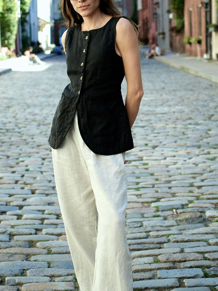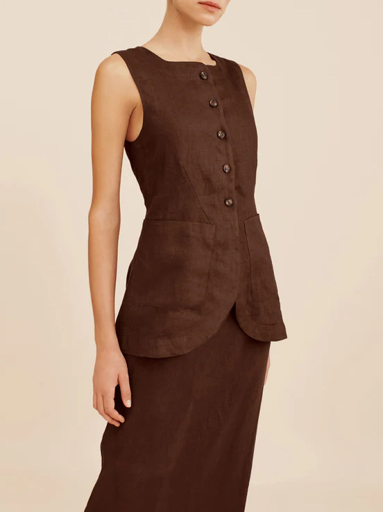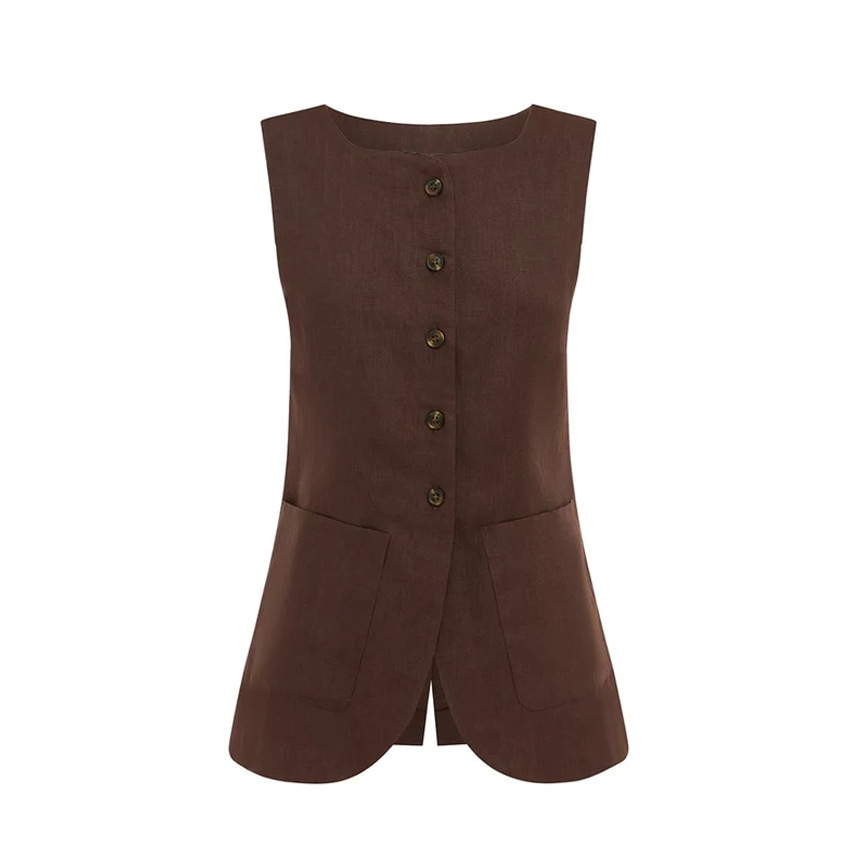 • 다크 브라운 조끼 탑