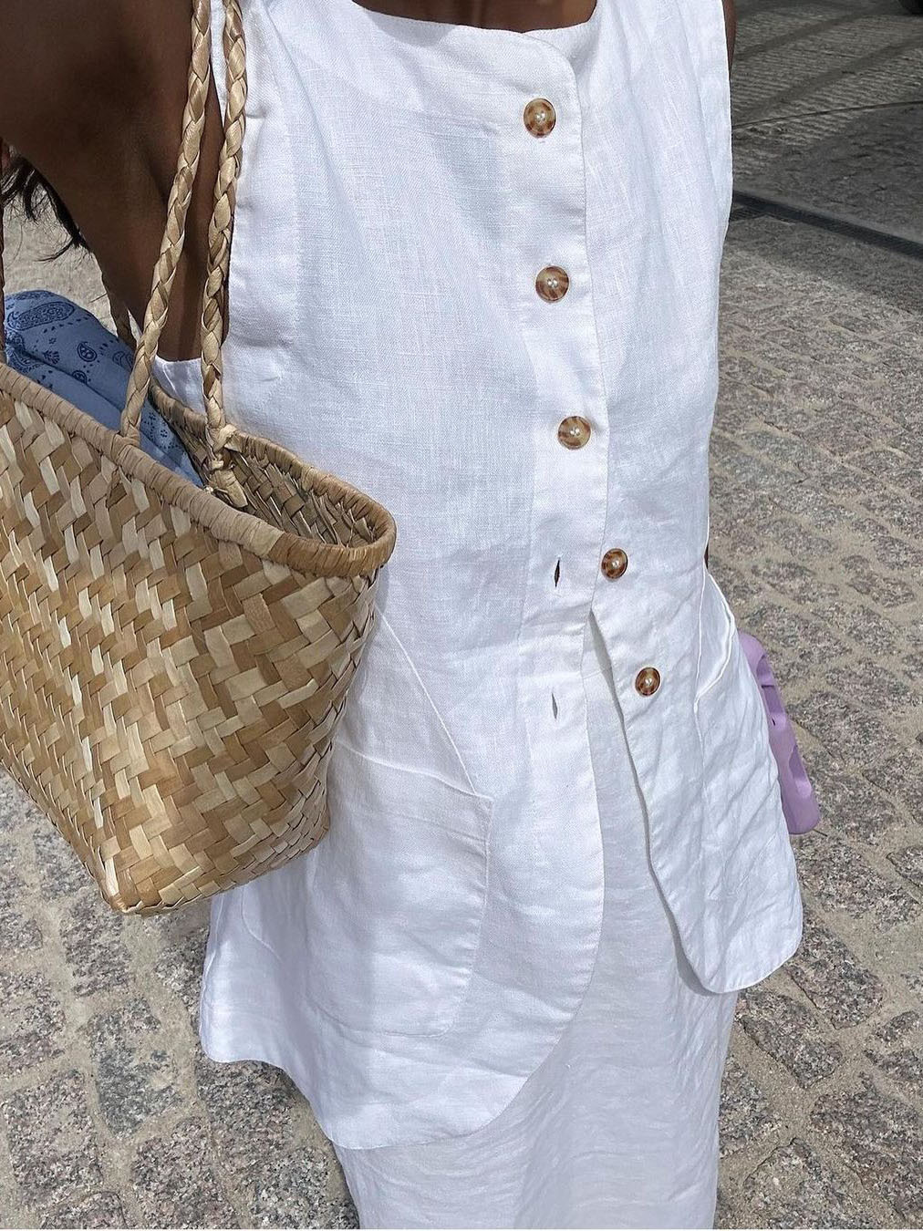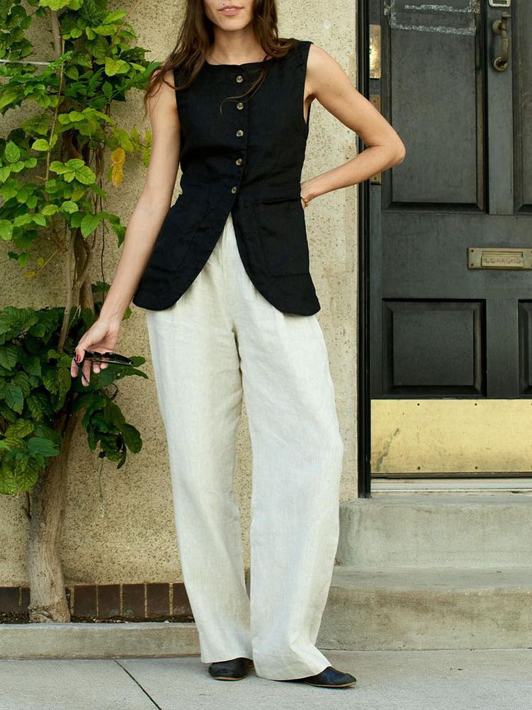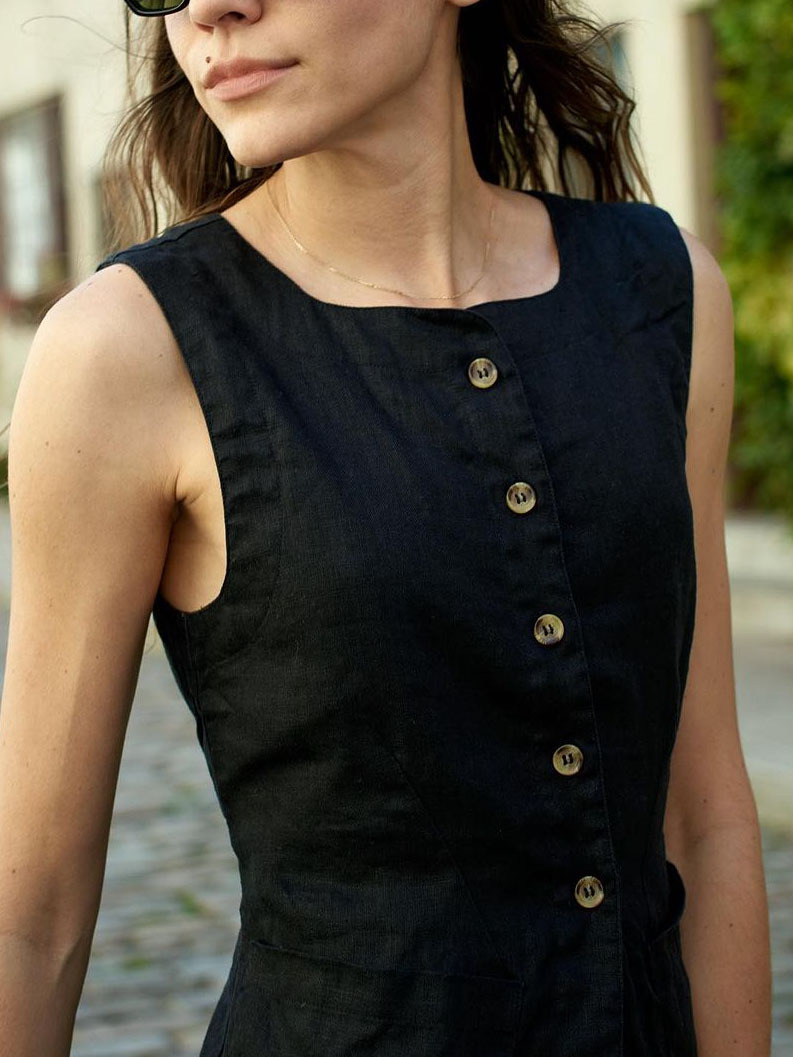 2024 간단한 프랑스 통근 캐주얼 탑 여름 면화 광장 칼라 민소매 조끼 유럽과 미국 여성 의류 폭발 국경스토어 가기