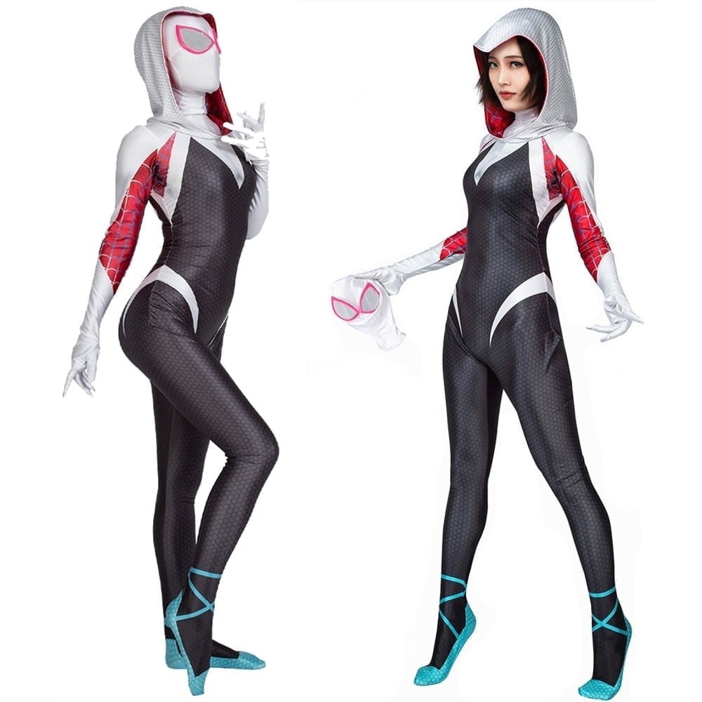 할로윈 그웬 여성 거미 2 남자 평행 우주 옷 코스프레 타이트 키즈 성인 영웅 의상스토어 가기